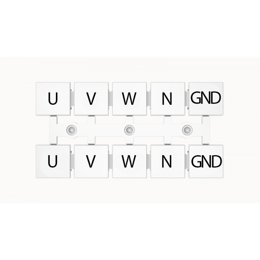 Кассета с маркировочными шильдиками, для клемм сечением 16 мм.кв., верхняя, 5x2 шильдиков, нанесенные символы: U V W N GND, с вертикальным расположением, размер шильдика: 11 x 10,8 мм, цвет: белый