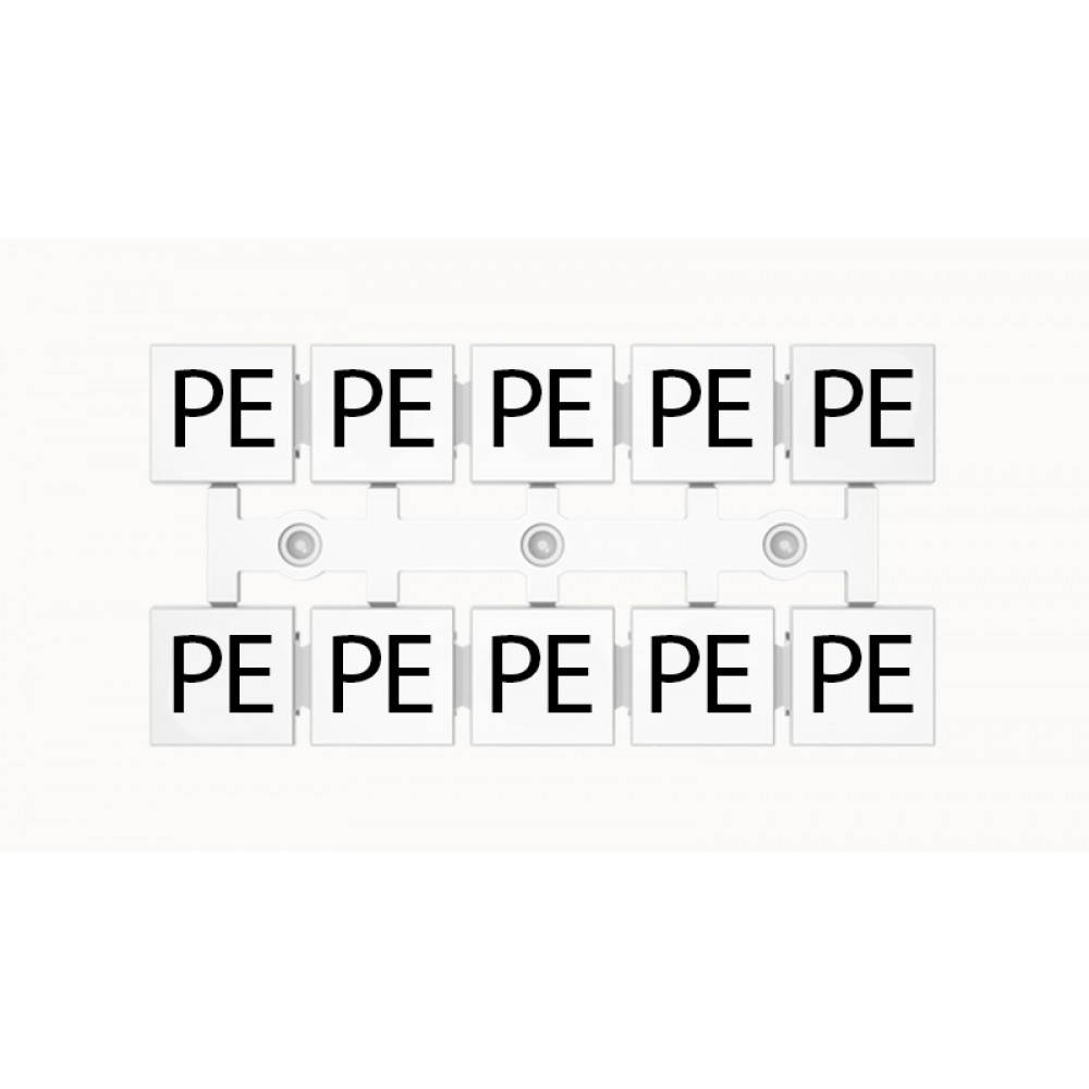 Кассета с маркировочными шильдиками, для клемм сечением 16 мм.кв., верхняя, 5x2 шильдиков, нанесенные символы: PE, с вертикальным расположением, размер шильдика: 11 x 10,8 мм, цвет: белый
