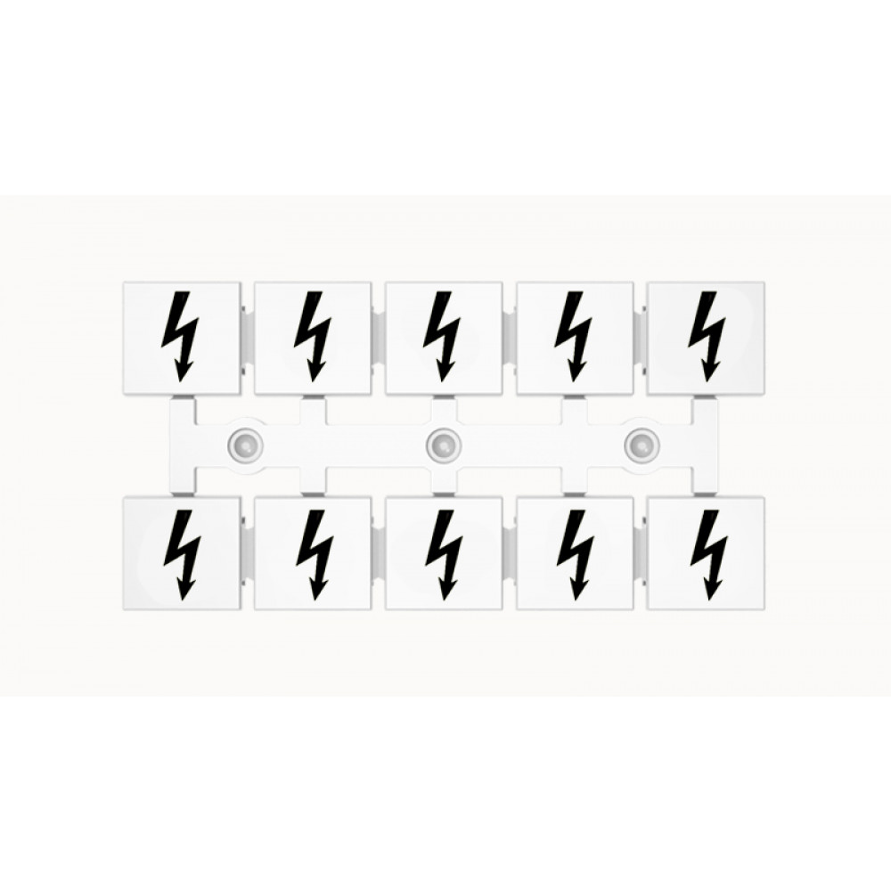 Кассета с маркировочными шильдиками, для клемм сечением 16 мм.кв., верхняя, 5x2 шильдиков, нанесенные символы: знак "Молния" с вертикальным расположением, размер шильдика: 11 x 10,8 мм, цвет: белый