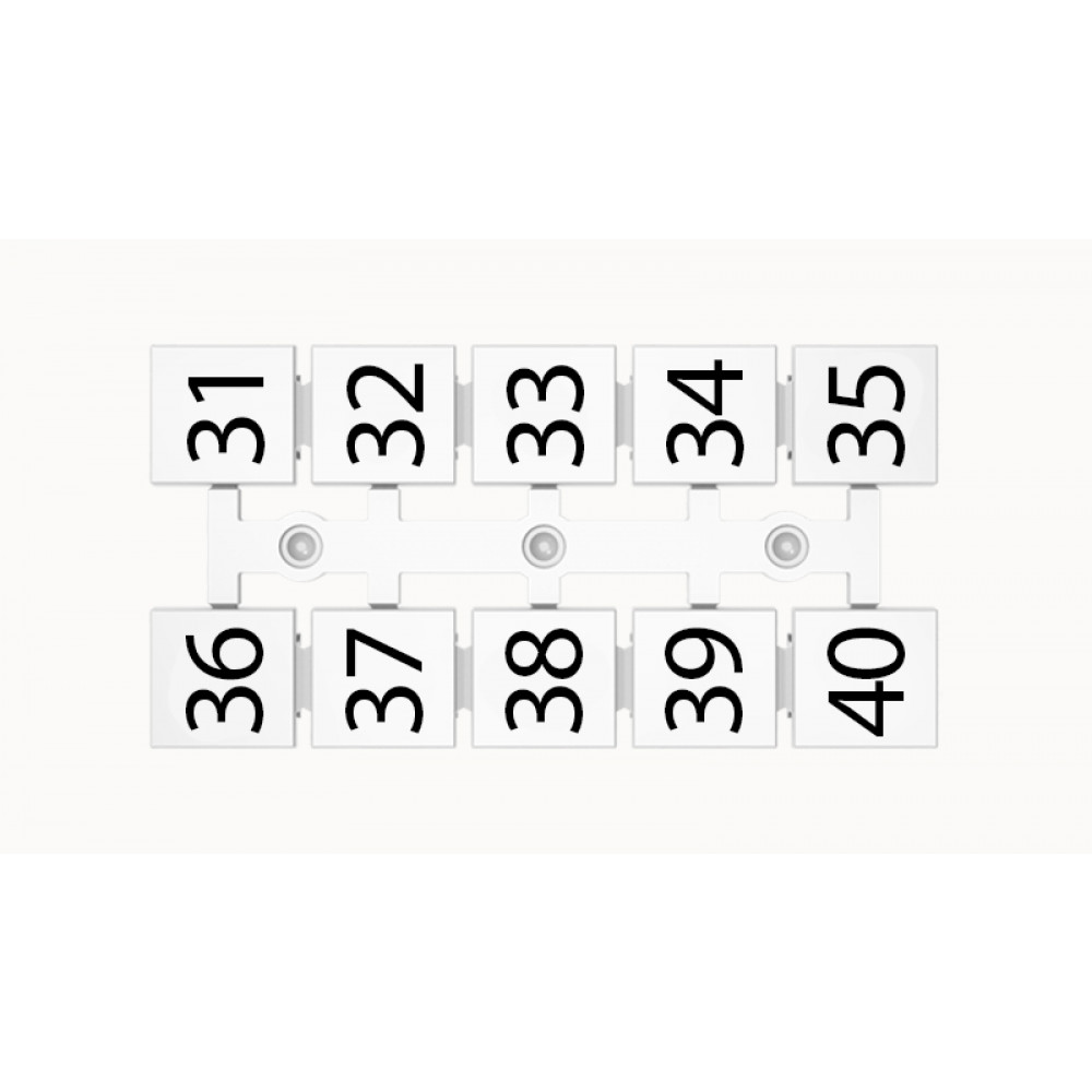 Маркировка (полоска) ZT12-10P-19-20Z(H), Кассета с маркировочными шильдиками, для клемм сечением 16 мм.кв., верхняя, 5x2 шильдиков, нанесенные символы: 31...40, с горизонтальным расположением, размер шильдика: 11 x 10,8 мм, цвет: белый