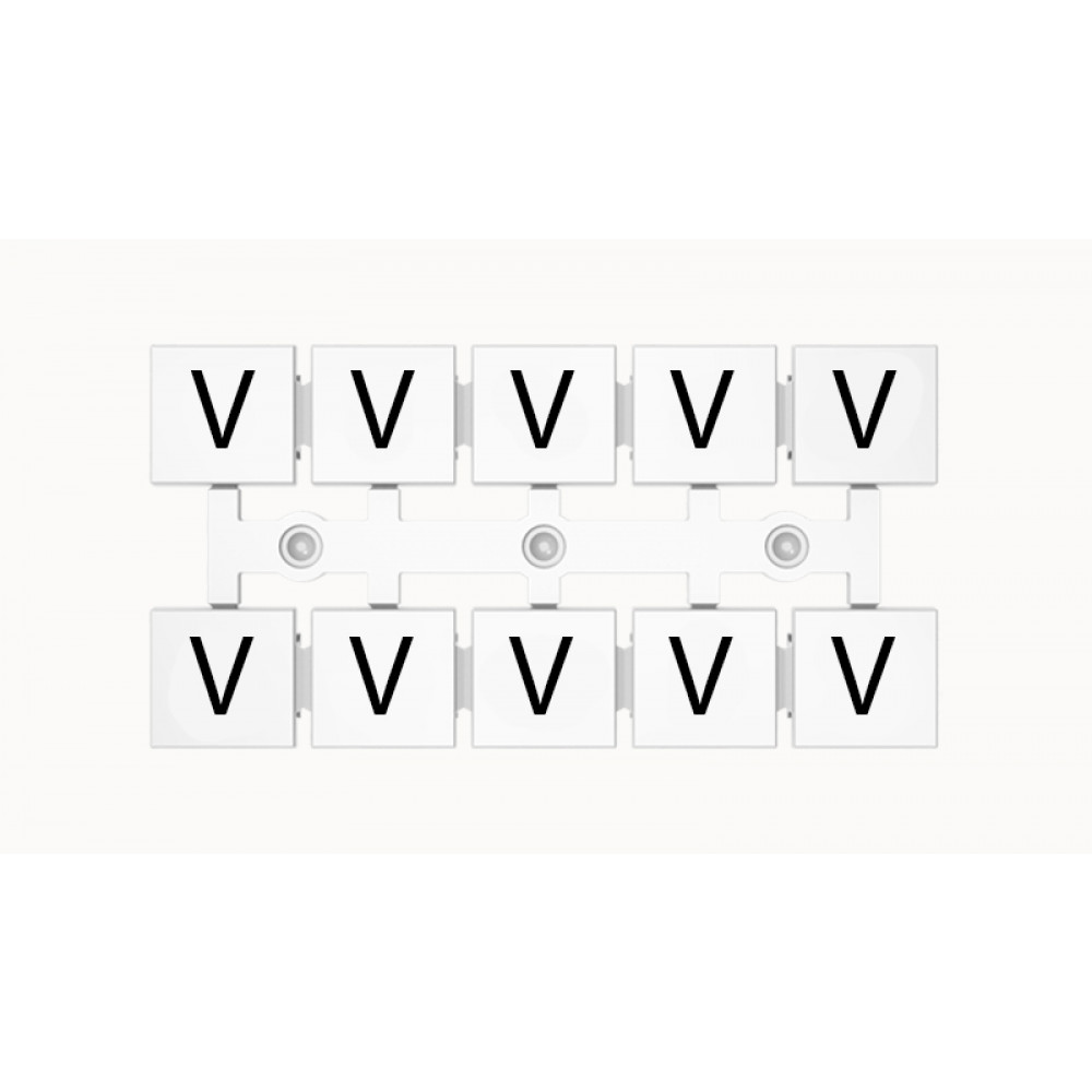Кассета с маркировочными шильдиками, для клемм сечением 16 мм.кв., верхняя, 5x2 шильдиков, нанесенные символы: V, с вертикальным расположением, размер шильдика: 11 x 10,8 мм, цвет: белый