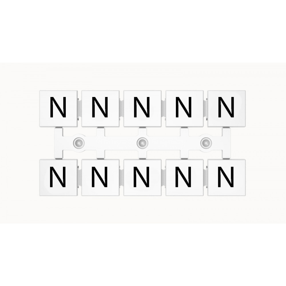 Кассета с маркировочными шильдиками, для клемм сечением 16 мм.кв., верхняя, 5x2 шильдиков, нанесенные символы: N, с вертикальным расположением, размер шильдика: 11 x 10,8 мм, цвет: белый