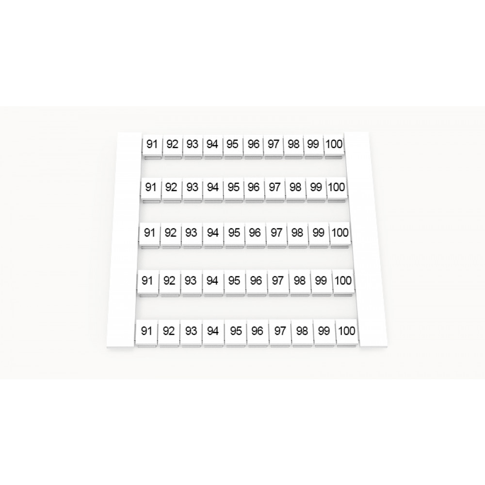 Кассета с маркировочными шильдиками, для клемм сечением 2,5 мм.кв., боковая, 50 шильдиков, нанесенные символы: 91...100, с вертикальным расположением, размер шильдика: 4,8 x 5,5 мм, цвет: белый
