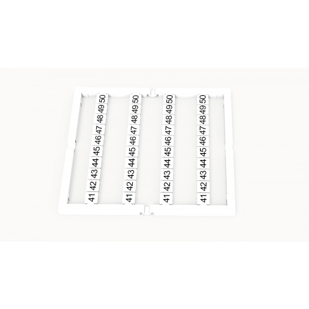 Кассета с маркировочными шильдиками, для клемм сечением 2,5 мм.кв., верхняя, 40 шильдиков, нанесенные символы: 41...50, с вертикальным расположением, размер шильдика: 4.5 x 4.9 мм, цвет: белый