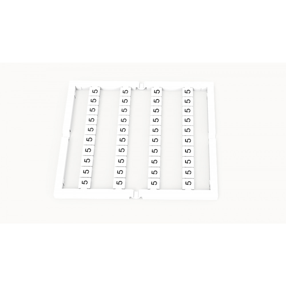 Маркировка (в кассетах) ZW5-40P-19-38Z(H), Кассета с маркировочными шильдиками, для клемм сечением 2,5 мм.кв., верхняя, 40 шильдиков, нанесенные символы: 5, с вертикальным расположением, размер шильдика: 4.5 x 4.9 мм, цвет: белый