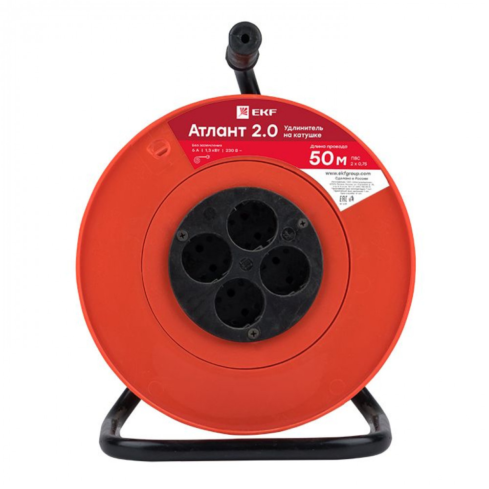 Удлинитель на катушке 4х50м без заземл. 6А IP20 Атлант 2.0 1.3кВт ПВС 2х0.75 PROxima UKA02-06-275-4-50, Удлинитель, сетевой фильтр