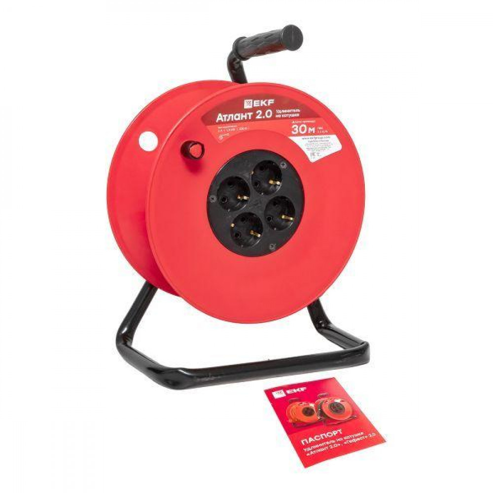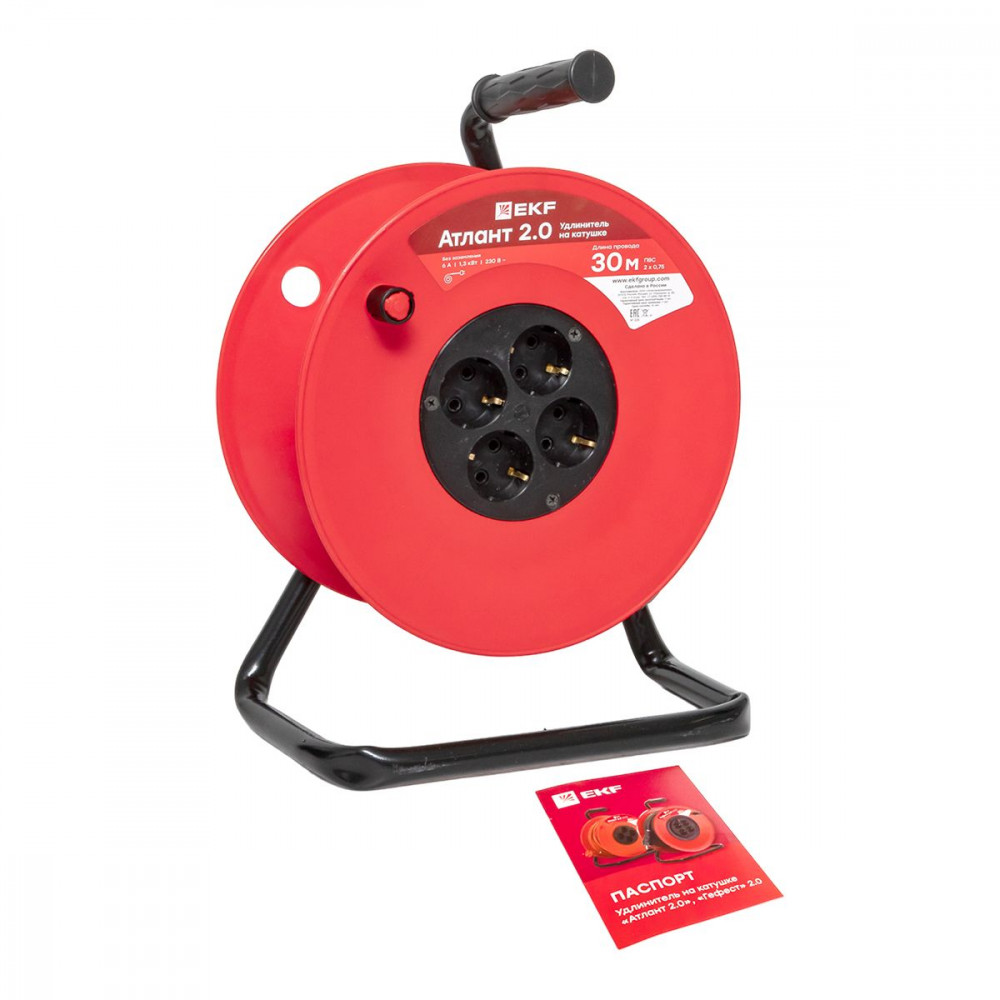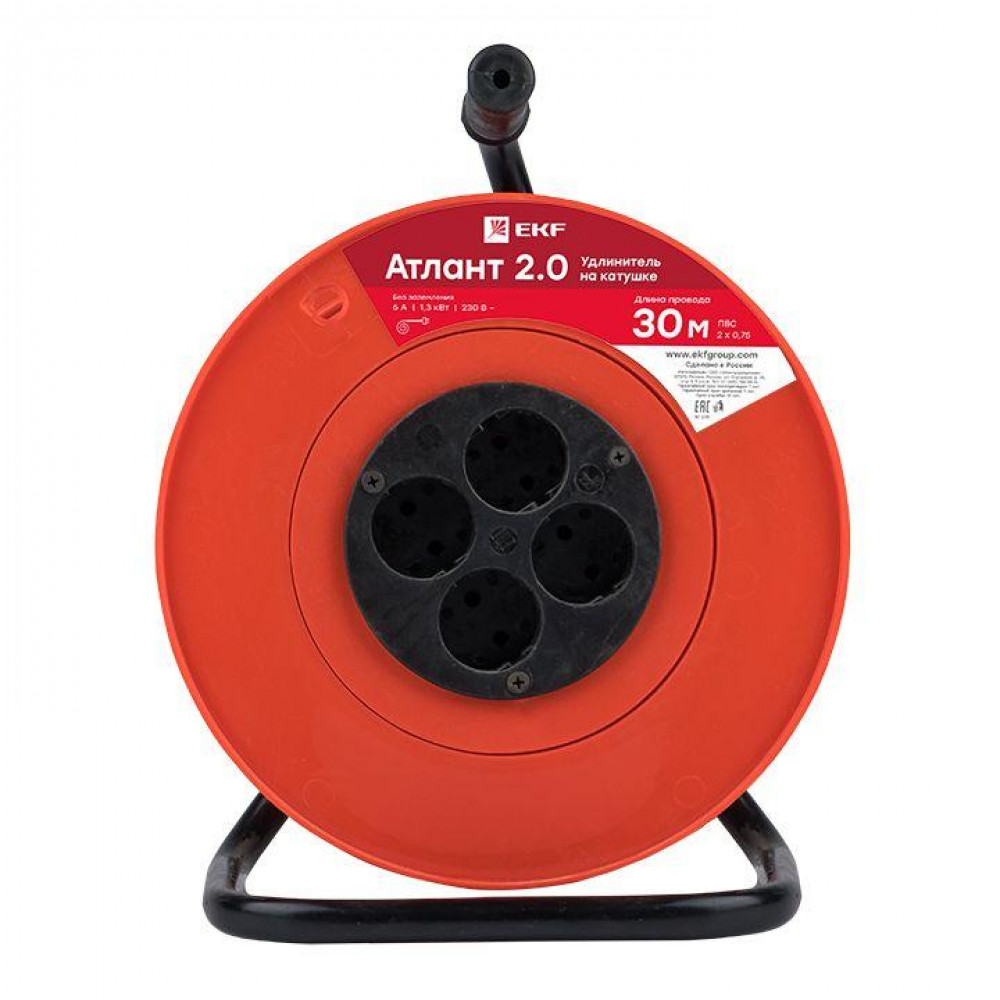 Удлинитель на катушке 4х30м без заземл. 6А IP20 Атлант 2.0 1.3кВт ПВС 2х0.75 PROxima UKA02-06-275-4-30, Удлинитель, сетевой фильтр