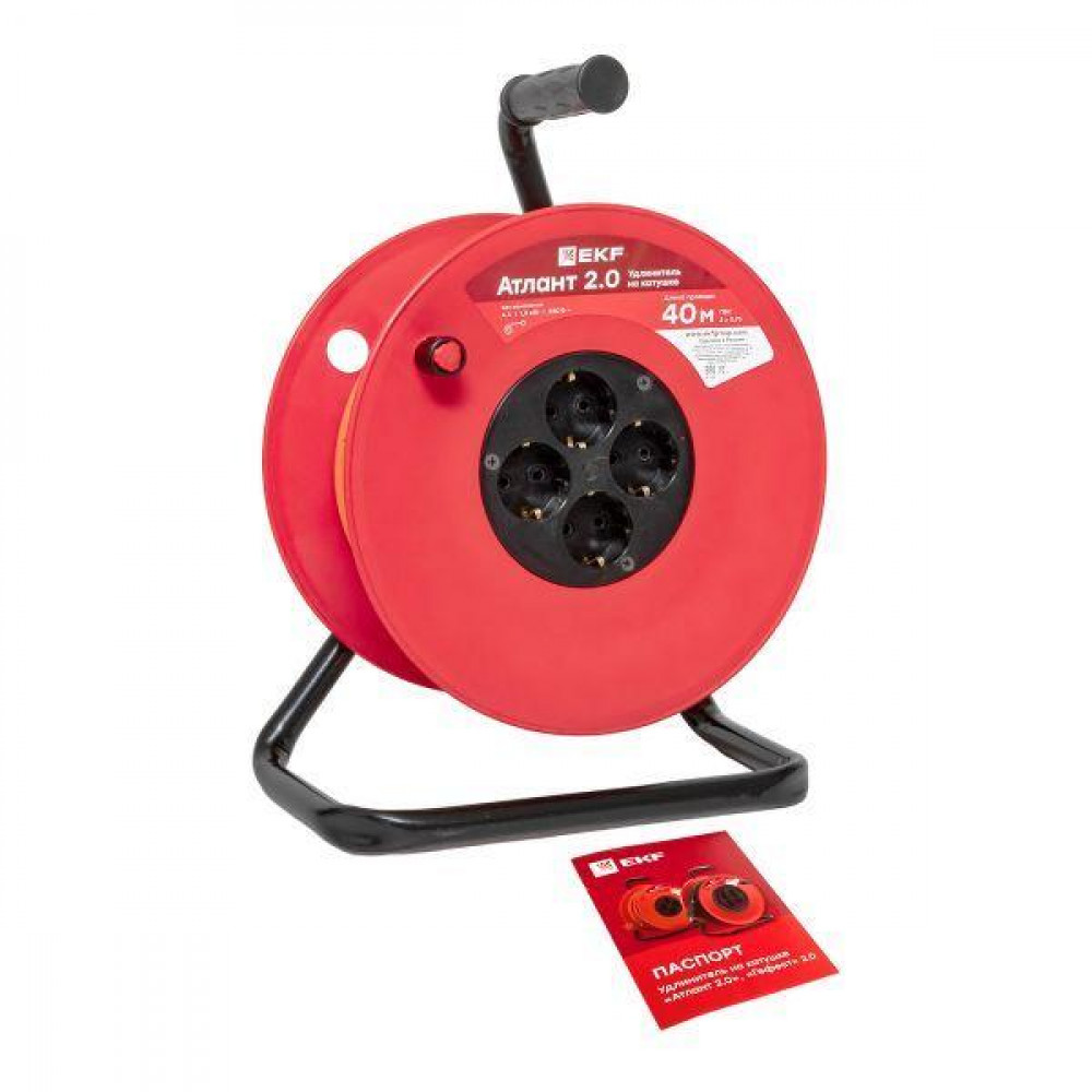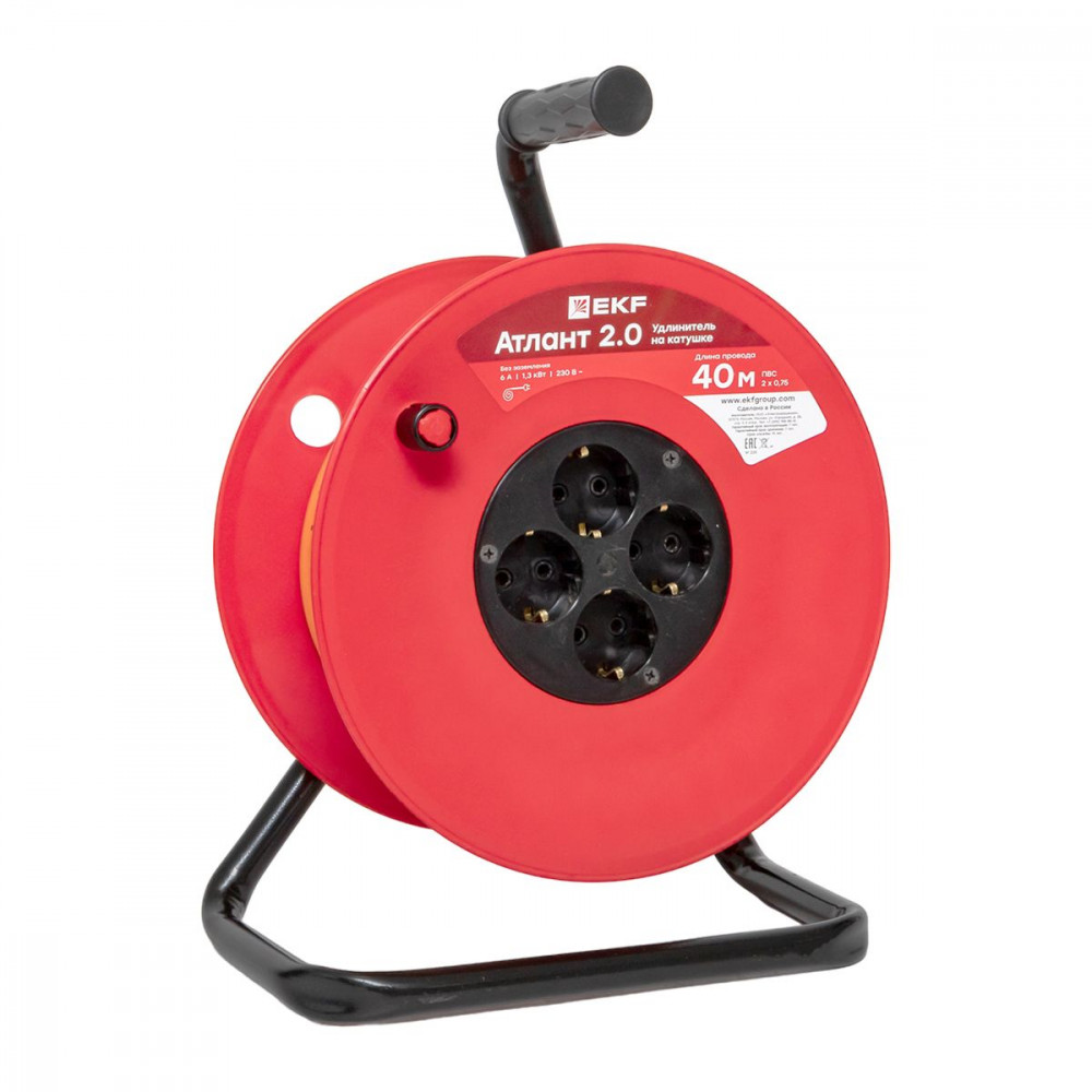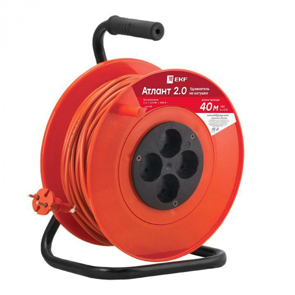 Удлинитель на катушке 4х40м без заземл. 6А IP20 Атлант 2.0 1.3кВт ПВС 2х0.75 PROxima UKA02-06-275-4-40, Удлинитель, сетевой фильтр
