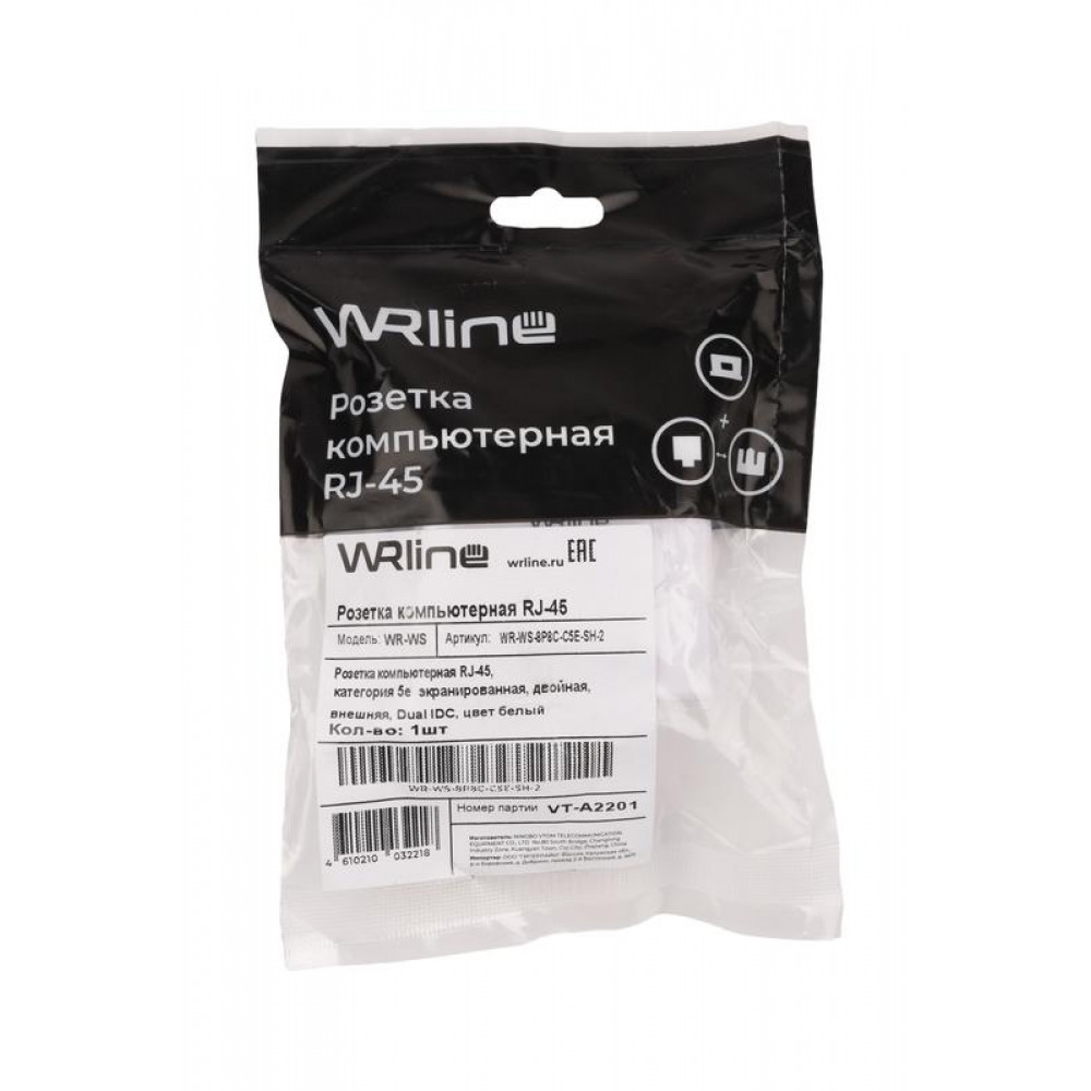 Описание Розетка компьютерная 2-м ОП WR-WS-8P8C-C5E-SH-2 RJ45 кат.5E экранир. Dual IDC бел. 505218
