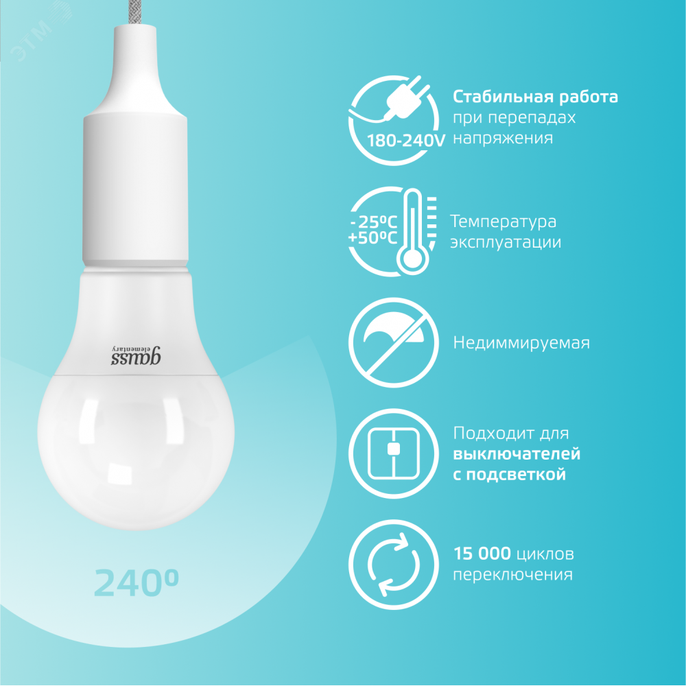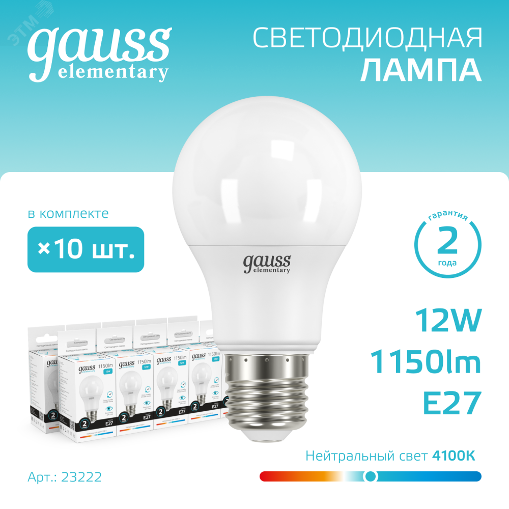 Светодиодные лампы Gauss Elementary – вечная классика, которая является энергосберегающей заменой обычным лампам накаливания. Модели представленные в ассортименте бренда обеспечивают пространство мягким не мерцающим светом и обладают всеми техническими характеристиками европейского уровня. В линейке представлены модели разных форм, высоких мощностей и размеров. Равномерное распределение света создает зрительный комфорт в любом помещении. Данная серия ламп создана для массового потребителя и имеет самое лучшее соотношение цена-качество.