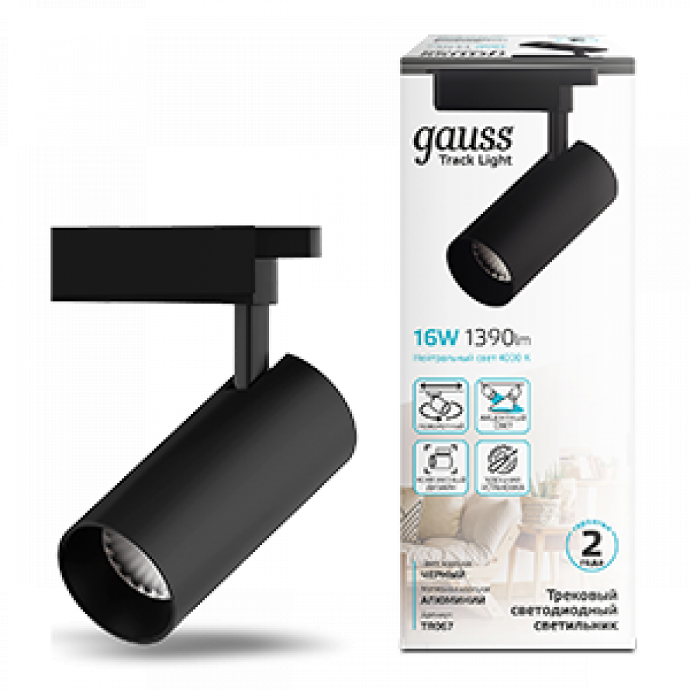 Описание Светильник светодиодный трековый Track 16Вт 4000К IP20 1390лм 180-240В ДПО угол 24град. цилиндр 1ф черн. TR067