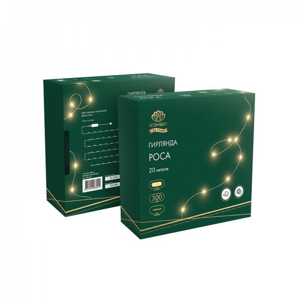 Гирлянда Роса длиной 30 метров представляет собой тонкий провод зеленого цвета, на котором горят и мерцают маленькие светодиоды, напоминающие капли росы. Благодаря своей универсальности гирлянда применяется для украшения любых предметом интерьера и используется для создания романтических образов на фотосессиях, свадьбах, днях рождениях и других праздниках. Отлично подходит для украшения новогодней елки. Роса излучает теплое белое свечение, которое создает уютную и приятную атмосферу в любом помещении. При работе гирлянда не нагревается, что делает ее абсолютно безопасной. Гирлянда имеет 8 режимов свечения. Оснащена трансформатором и контроллером, который позволяет выбирать необходимый режим работы.