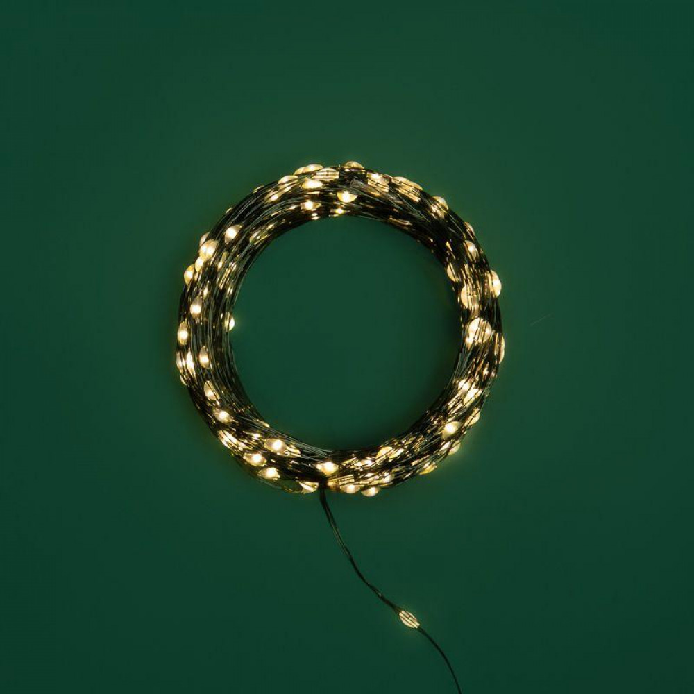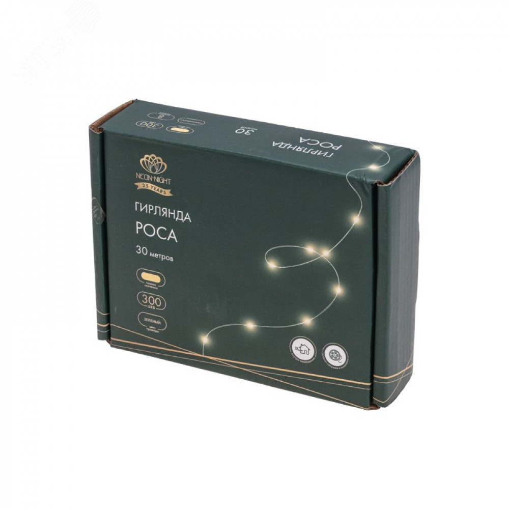 Описание Гирлянда "Роса" 30м 300LED тепл. бел. IP20 230В с контроллером провод зел. 303-276