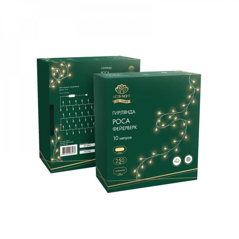 Гирлянда светодиодная "Роса "Фейерверк" 10м 250LED тепл. бел. 7.2Вт IP20 с контроллером на катушке 303-436, Светильник декоративный