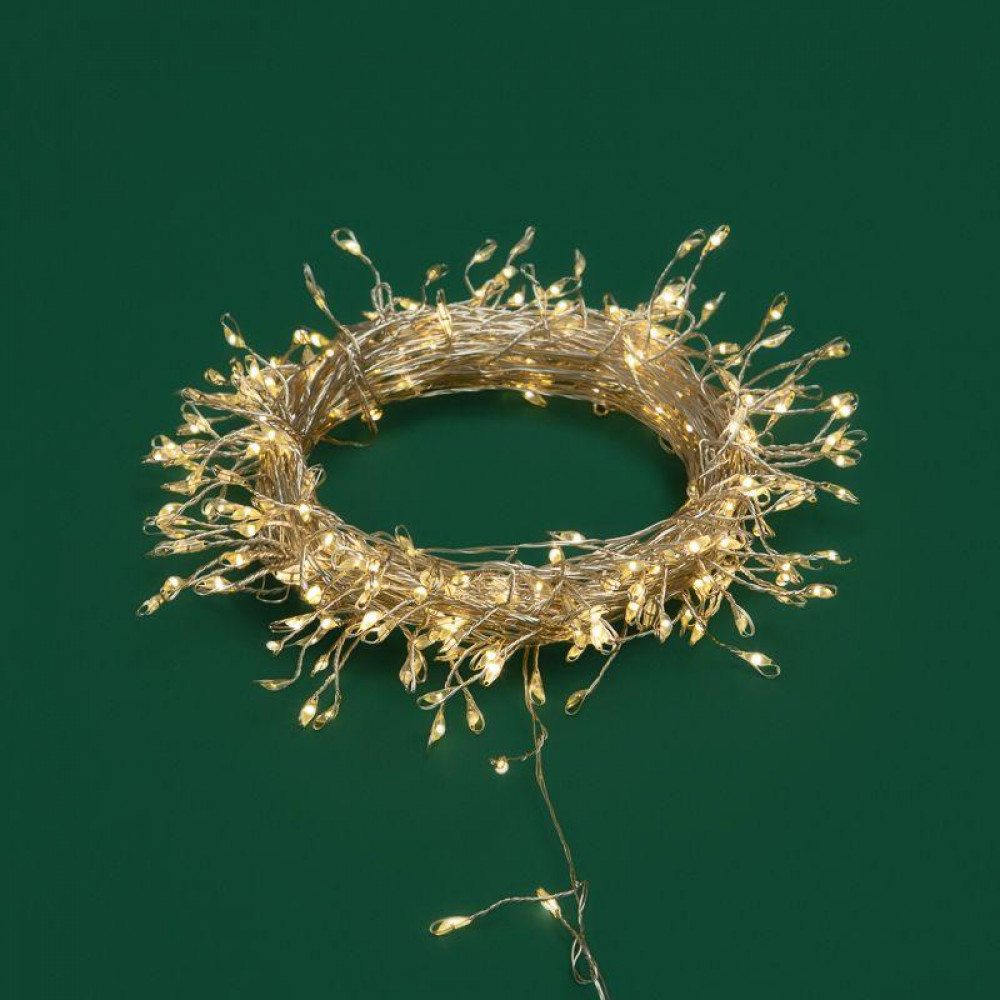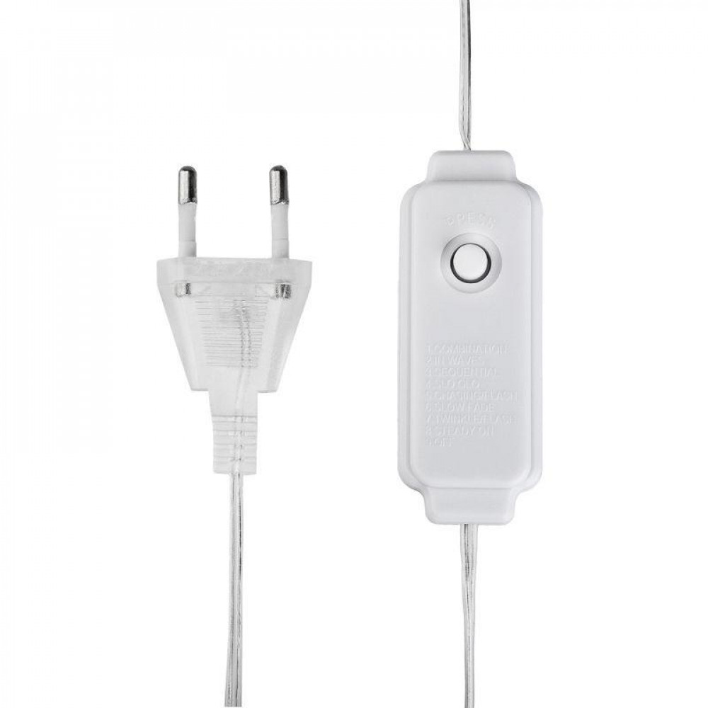 Описание Гирлянда светодиодная "Роса "Фейерверк" 10м 250LED тепл. бел. 7.2Вт IP20 с контроллером на катушке 303-436
