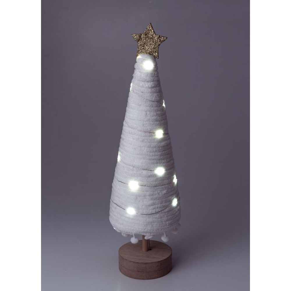 Доставка Светильник настольный "Елка" дизайн 1 (деревянное основание и звезда) 20LED плюш 11.5х38.5см тепл. бел. КОСМОС KOC_TAB-B104