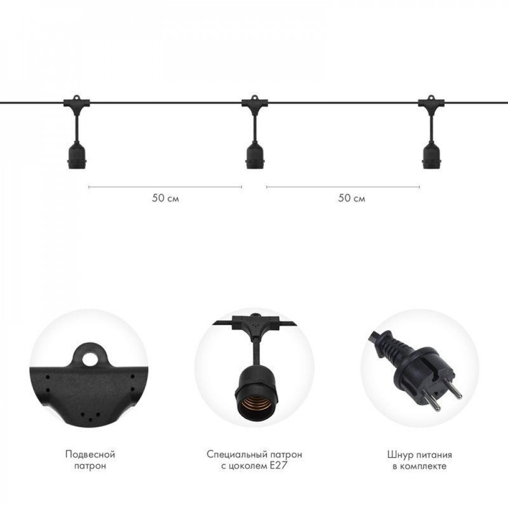Гирлянда светодиодная "Лофт" 20 матов. ламп х 5LED 60Вт IP44 уличная влагостойкая провод каучук черн. 331-356, Светильник декоративный