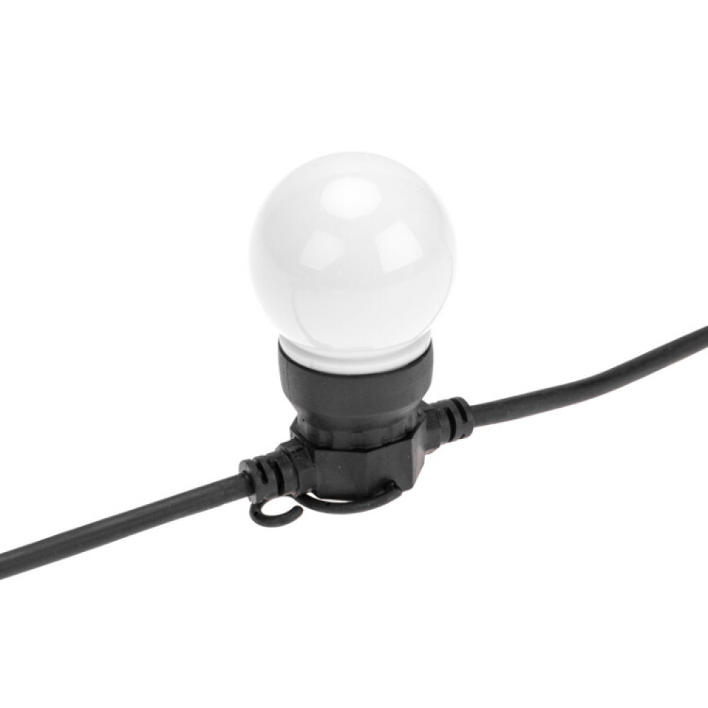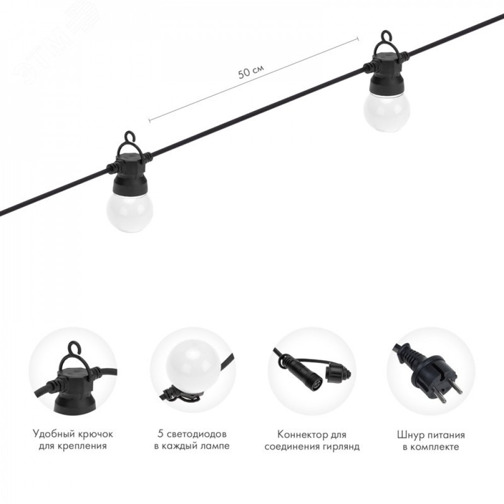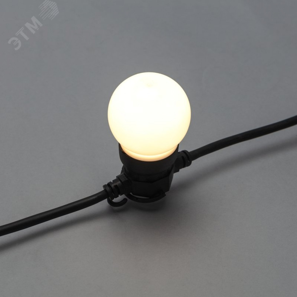 Описание Гирлянда светодиодная "Лофт" 20 матов. ламп х 5LED 60Вт IP44 уличная влагостойкая провод каучук черн. 331-356