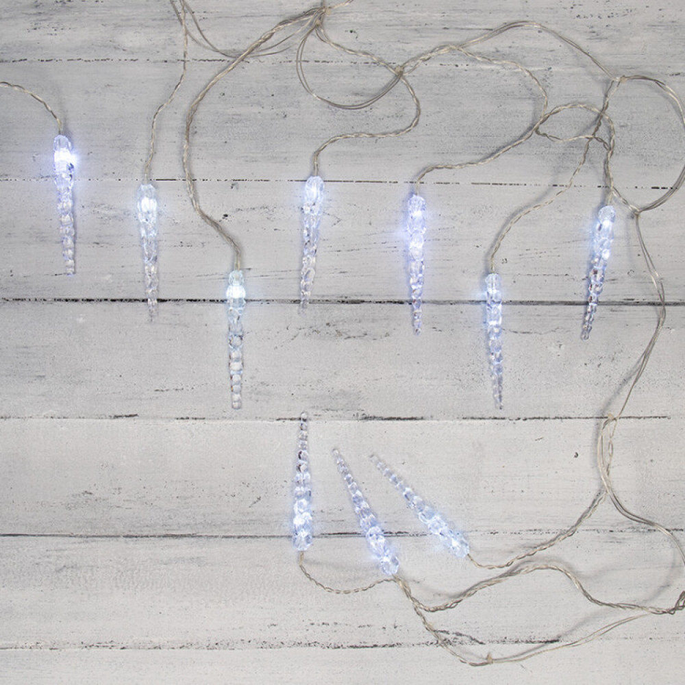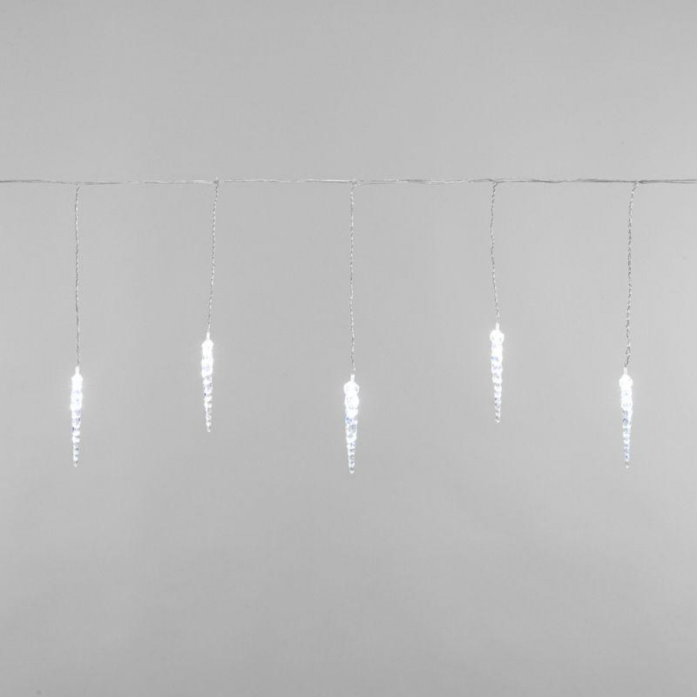 Описание Гирлянда светодиодная "Айсикл" (бахрома) "Сосульки" 1.5х0.25м 10LED бел. 0.51Вт IP20 провод прозр. 303-068