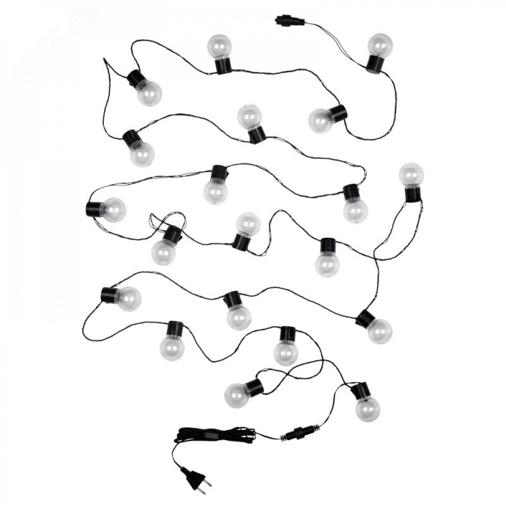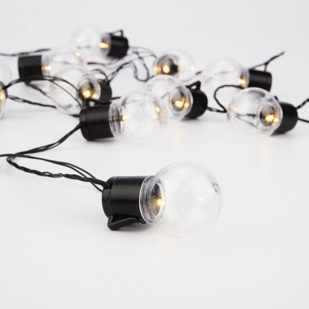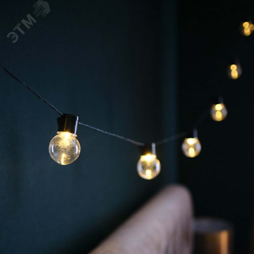 Описание Гирлянда светодиодная "Лофт" 5м 20LED тепл. бел. 1.2Вт IP20 провод ПВХ черн. 303-066