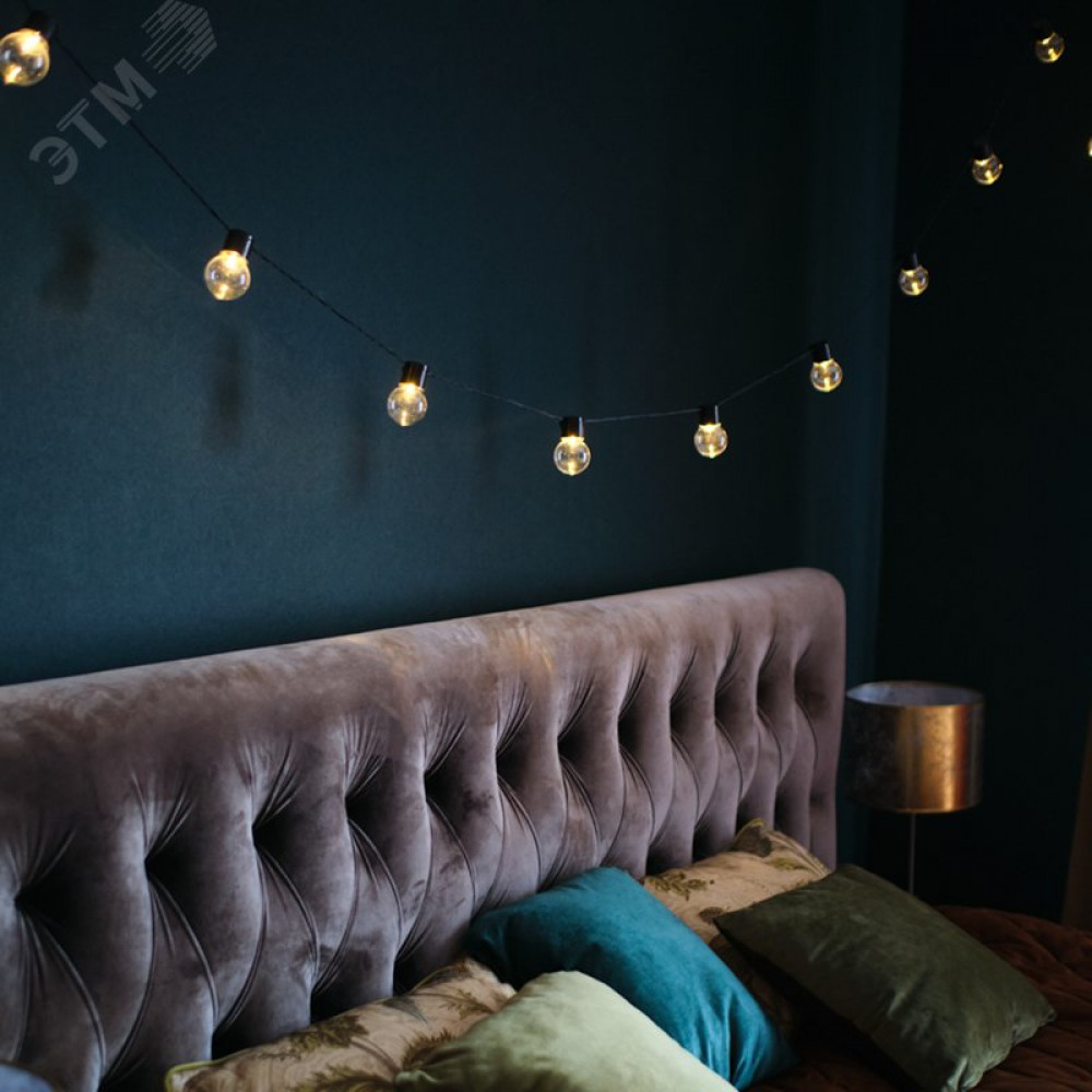 Гирлянда светодиодная "Лофт" 5м 20LED тепл. бел. 1.2Вт IP20 провод ПВХ черн. 303-066, Светильник декоративный