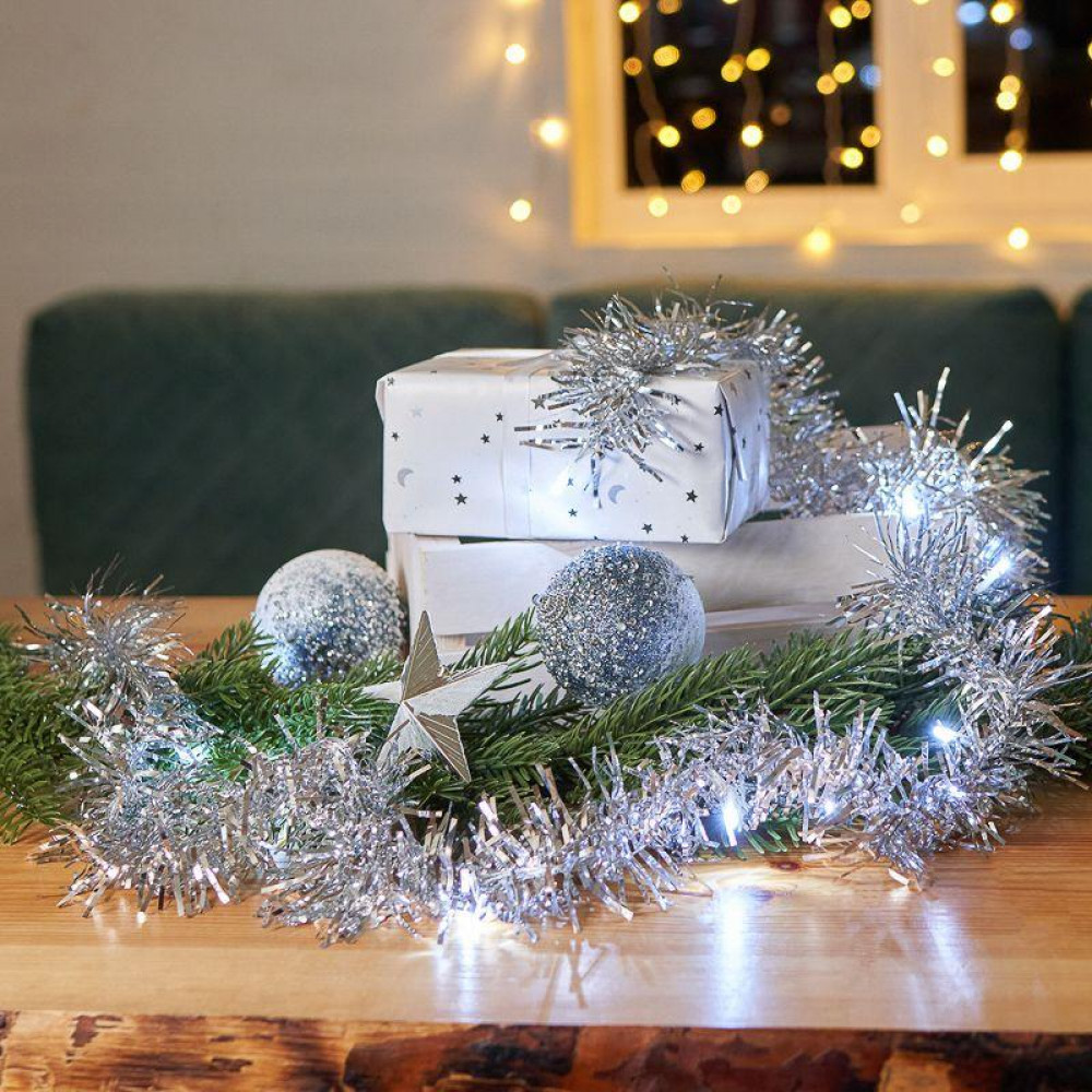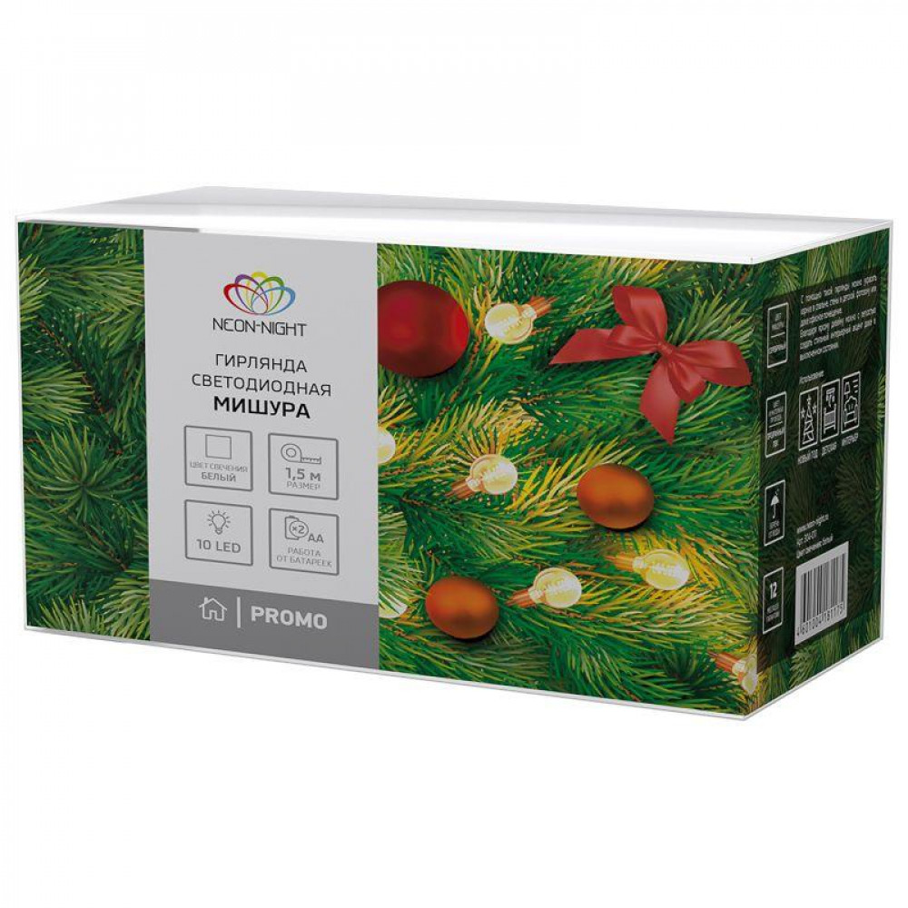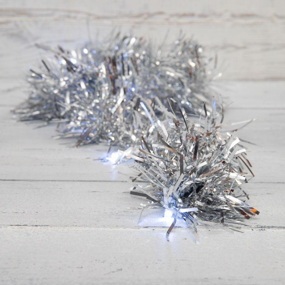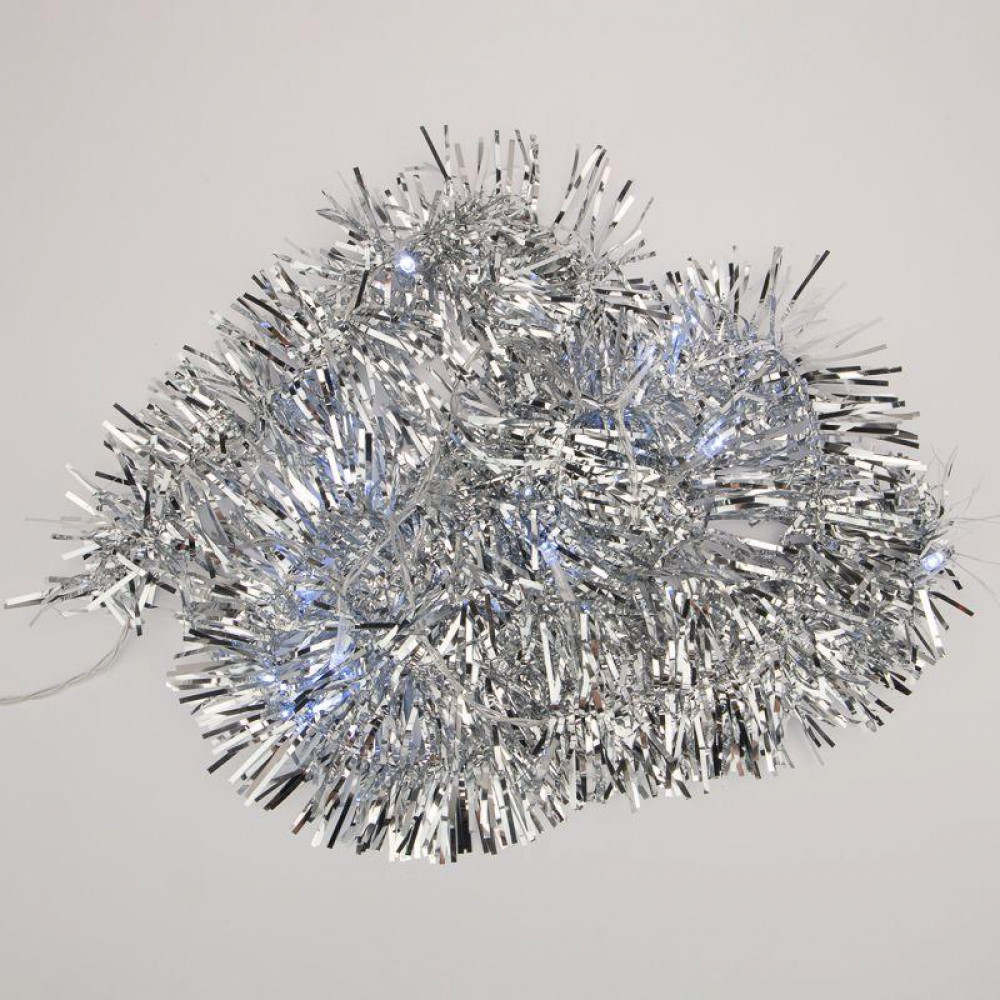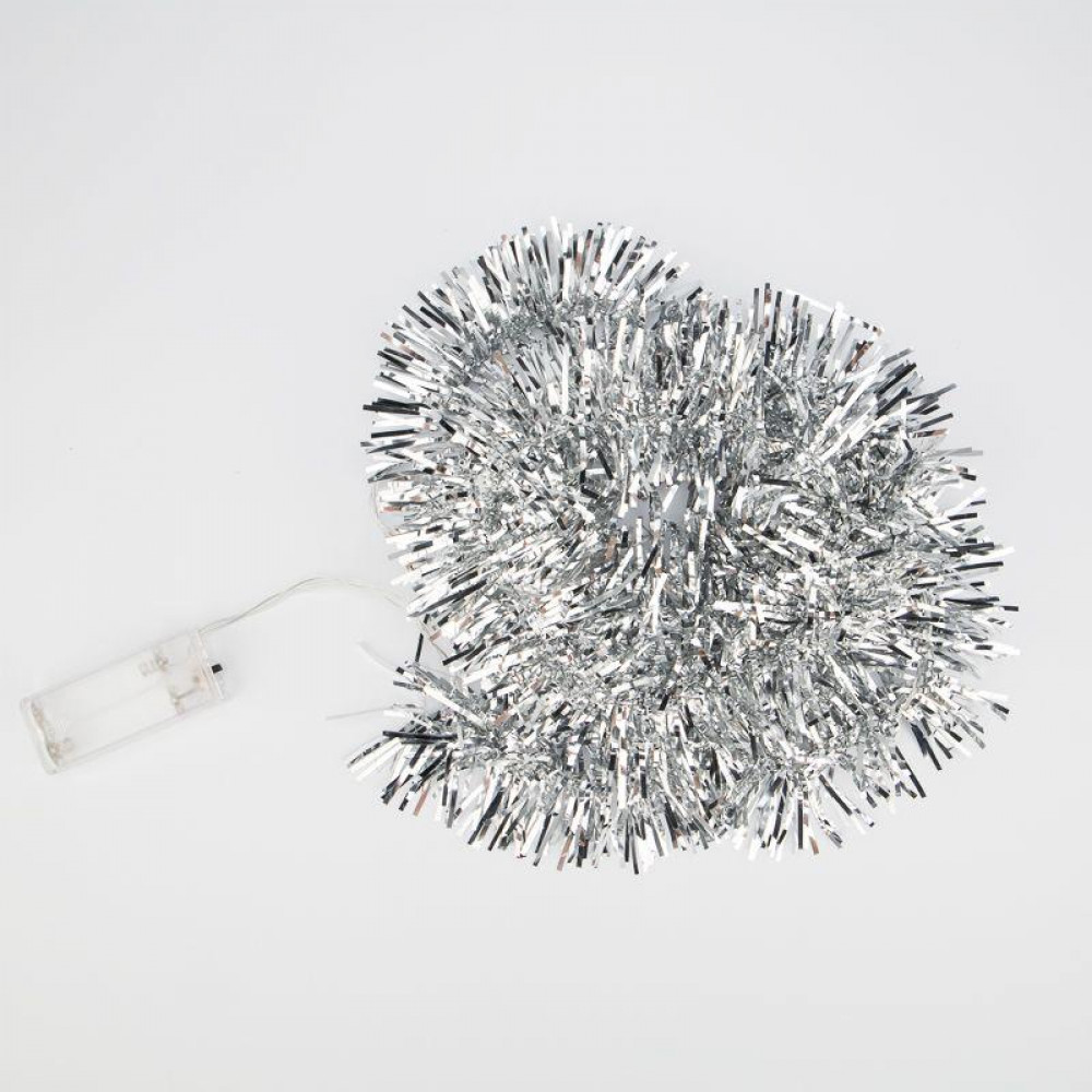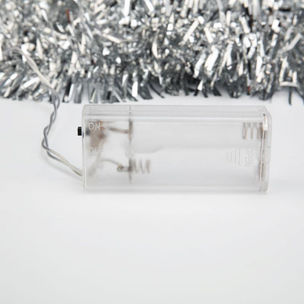 Гирлянда светодиодная "Мишура серебряная " 1.5м 10LED бел. 0.1Вт IP20 провод ПВХ прозр. элементы питания 2хAA (не в компл.) 304-011, Светильник декоративный