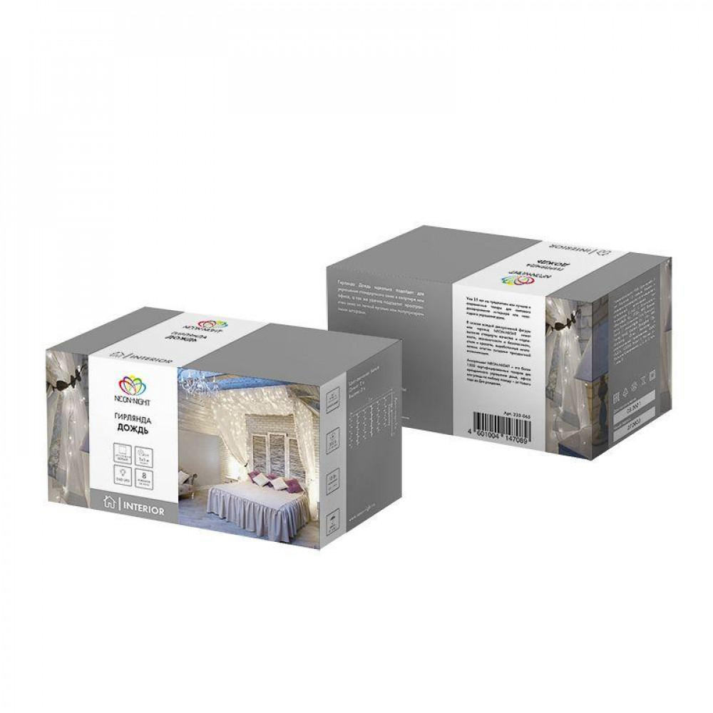 Гирлянда ''Дождь'' 2?3 м — это настоящий повод для праздника, который можно устроить в любом месте, в любое время, просто включив украшение в розетку. 240 светодиодов искрятся белым ярким светом, озаряя пространство вокруг и дарят веселое настроение всем присутствующим. Гирлянда прекрасно подходит для декора окон в комнатах с высокими потолками. Шнур защищен от повреждений изоляционной оболочкой из прозрачного ПВХ. Гирлянда имеет степень защиты IP20 и предназначена для использования в интерьере и сухих помещениях с умеренной влажностью. Отличительное преимущество интерьерных гирлянд - длина шнура питания 3 метра — этого достаточно, чтобы подключить изделие к розетке в любом удобном месте без использования удлинителей.