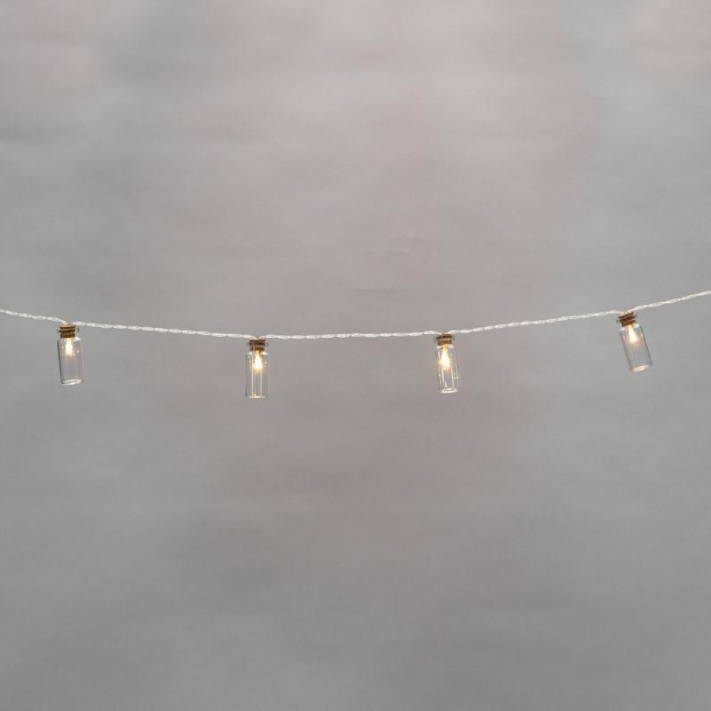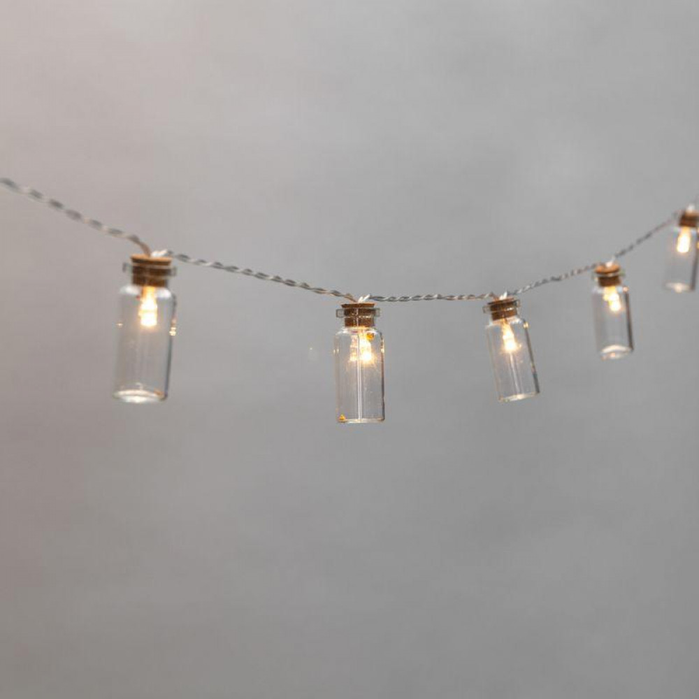 Гирлянда светодиодная "Баночки" 1.5м 10LED тепл. бел. 0.1Вт IP20 провод ПВХ прозр. элементы питания 2хAA (не в компл.) 303-096, Светильник декоративный