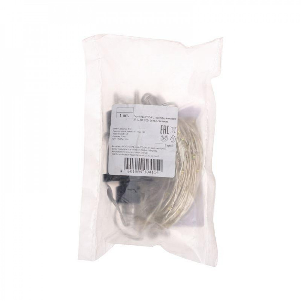 Гирлянда светодиодная "Роса" 20м 200LED бел. 3.6Вт IP44 с трансф. 303-205, Светильник декоративный