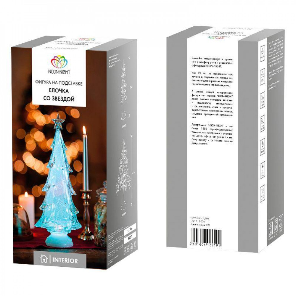 Описание Фигура светодиодная "Елочка со звездой" 37см 1LED 0.1Вт IP20 на подставке элементы питания 4хAAA (не в компл.) 513-026