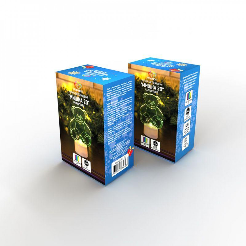 Доставка Фигура светодиодная "Мишка 2D" 1LED RGB 0.1Вт IP20 на подставке элементы питания 3хAG13(LR44) (в компл.) 501-047
