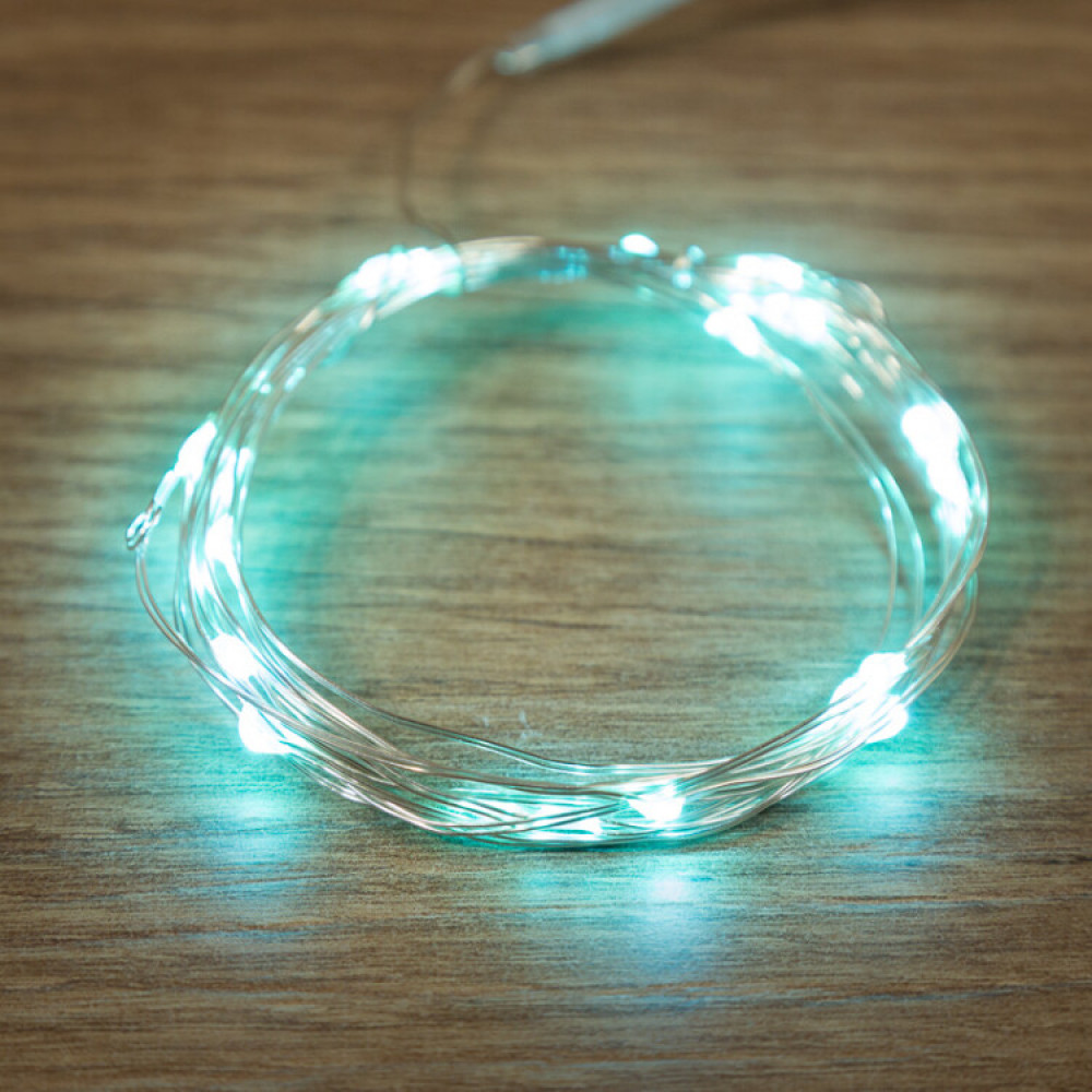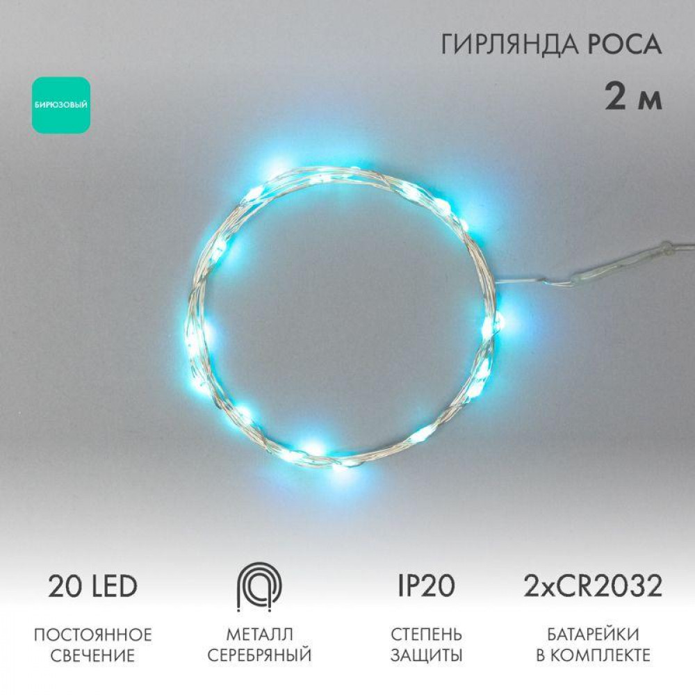 Гирлянда светодиодная "Роса" 2м 20LED бирюз. 2Вт 4.5В IP20 провод прозр. 303-004, Светильник декоративный