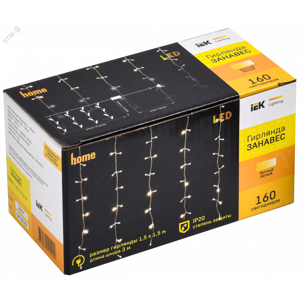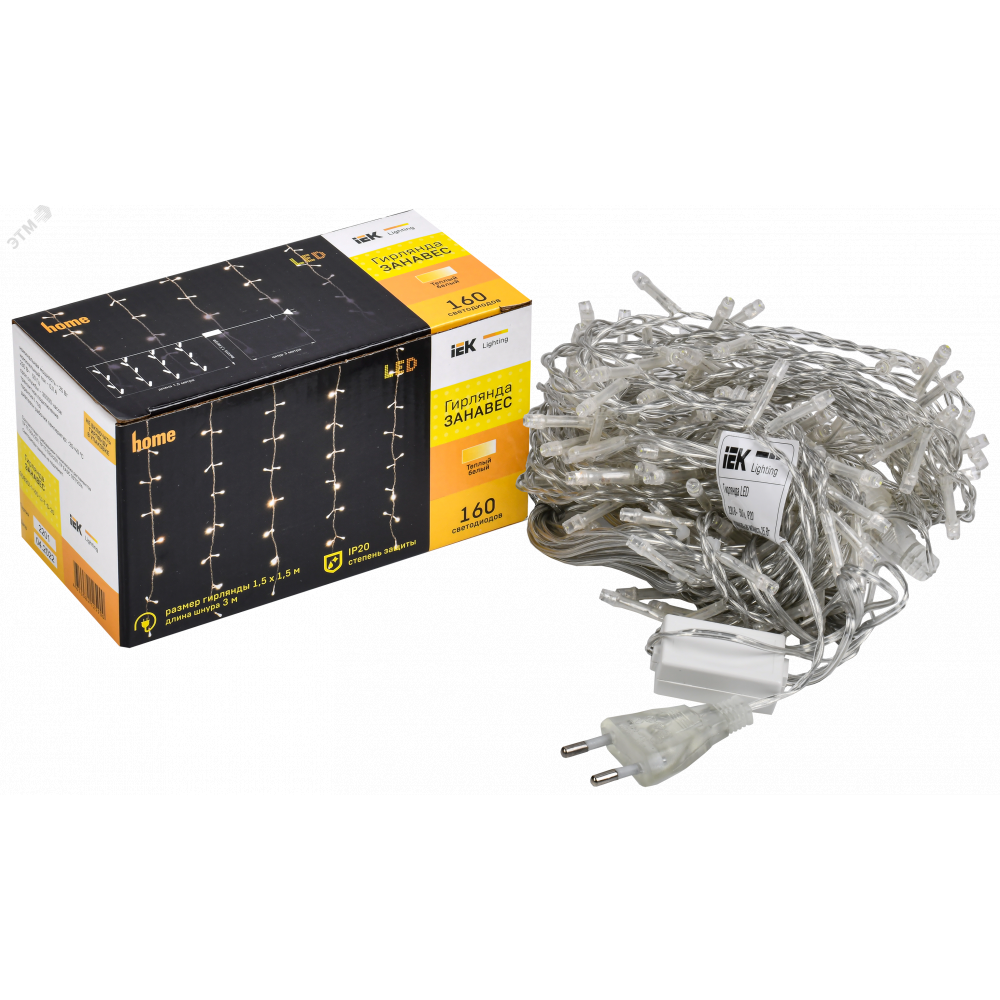 Гирлянда "Занавес" 1.5х1.5м 160LED тепл. бел. IP20 провод прозр. 230В транзит LGDB201-1-160-L1-T-S-20, Светильник декоративный