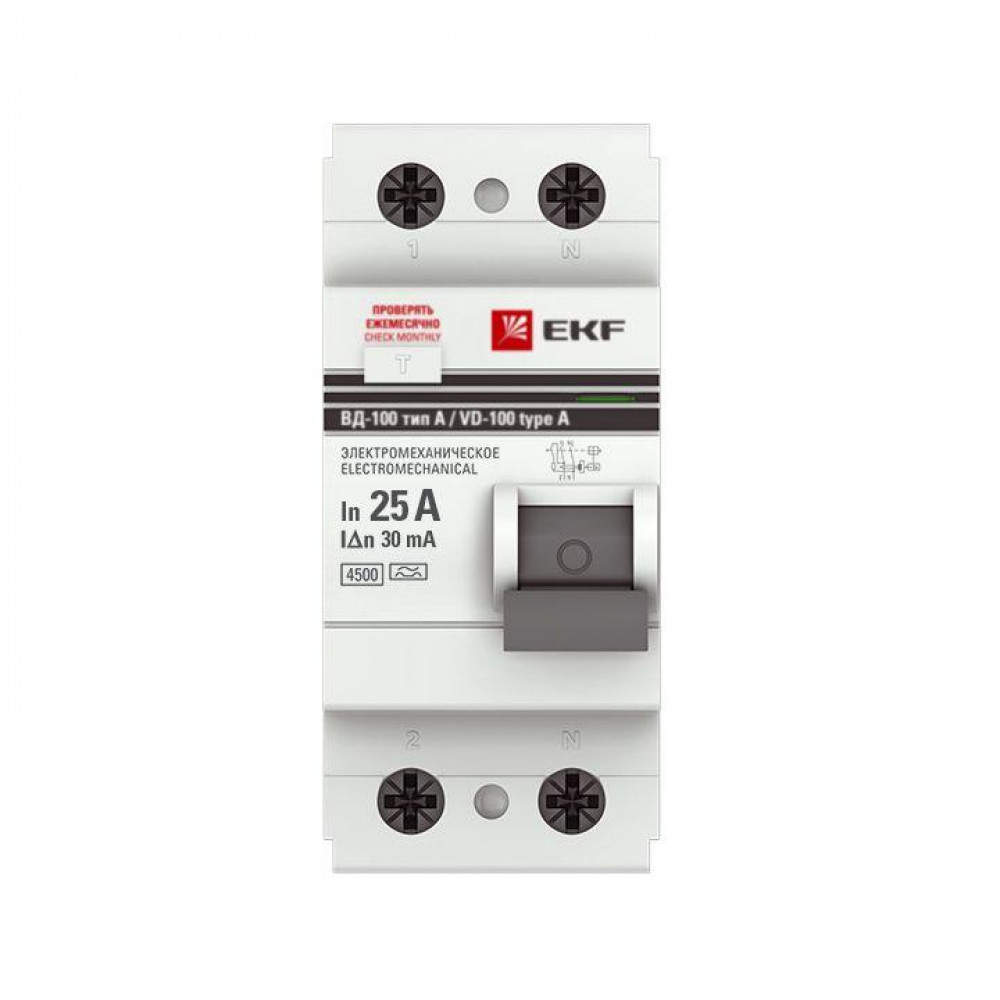 Выключатель дифференциального тока (УЗО) 2п 25А 30мА тип A ВД-100 (электромех.) PROxima elcb-2-25-30-em-a-pro, Дифференциальная защита: УЗО, дифф блок