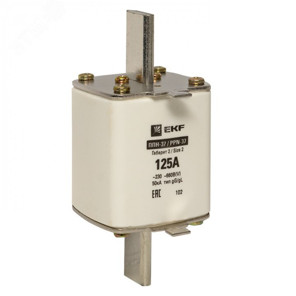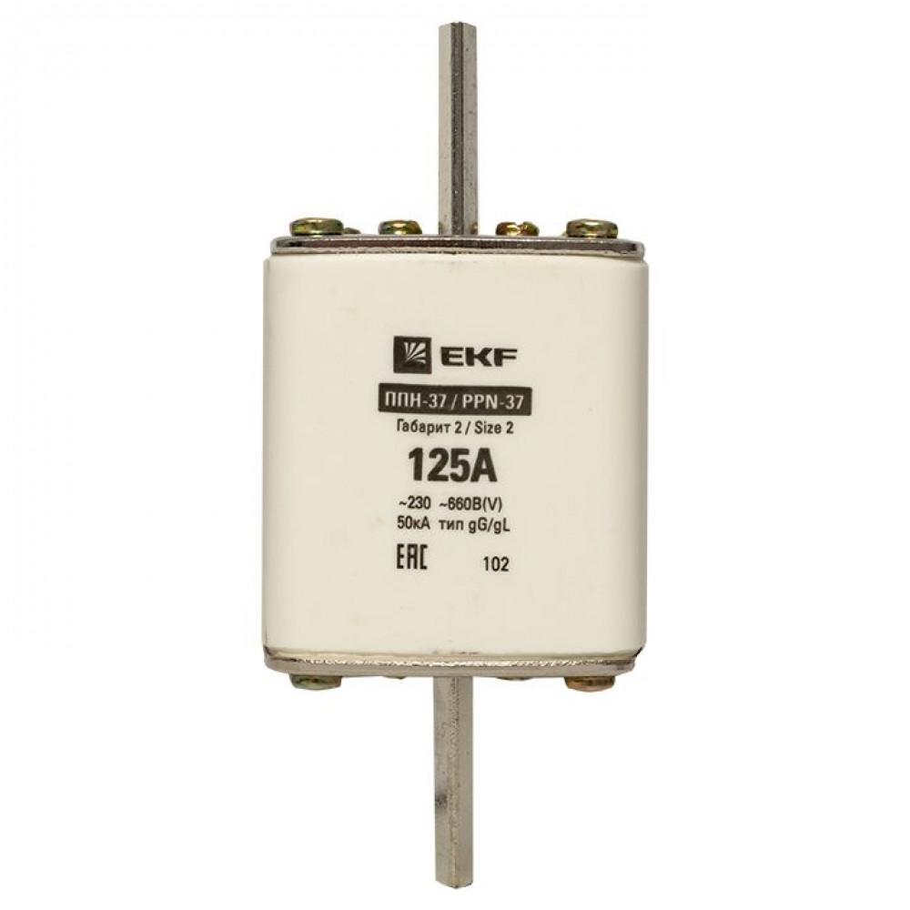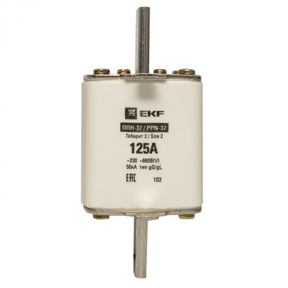 Плавкая вставка ППН-37 400/125А габарит 2 EKF. Предохранители плавкие ППН EKF, укомплектованные плавкими вставками типа gG/gL, предназначаются для защиты кабельных линий и промышленных электроустановок от токов перегрузки и короткого замыкания. Предохранители применяются в электрических сетях переменного тока частотой 50 Гц с напряжением до 660В. Применяются для крепления в распределительных и вводно-распределительных устройствах. Предохранители плавкие ППН могут устанавливаться в основание с держателем, а также в специально предназначенные рубильники. В комплект поставки предохранителей плавких ППН основание с держателем не входит и приобретается отдельно.