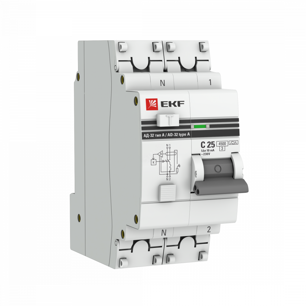 Описание Выключатель автоматический дифференциального тока 2п (1P+N) 25А 30мА тип A АД-32 PROxima DA32-25-30-a-pro