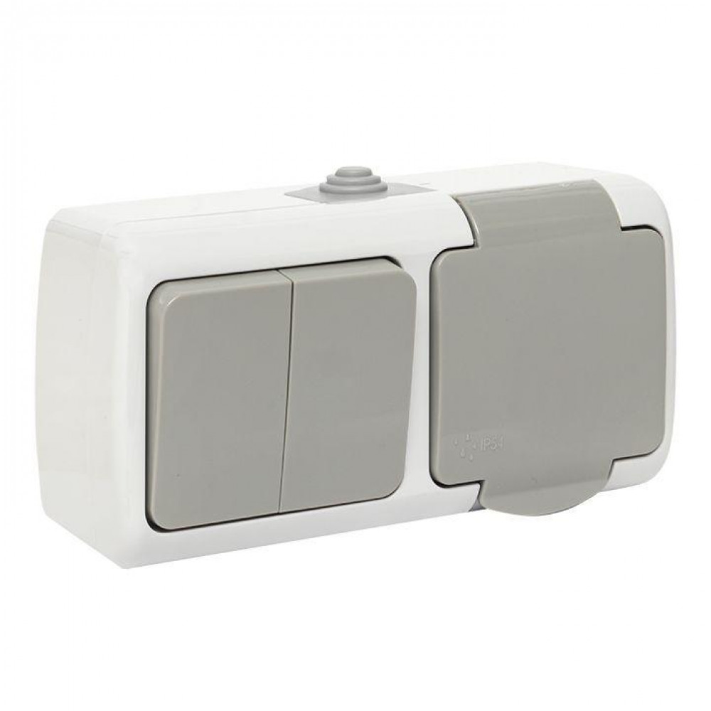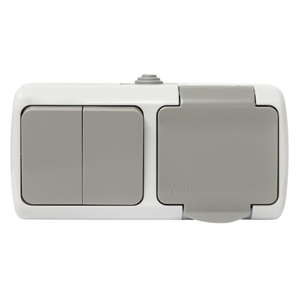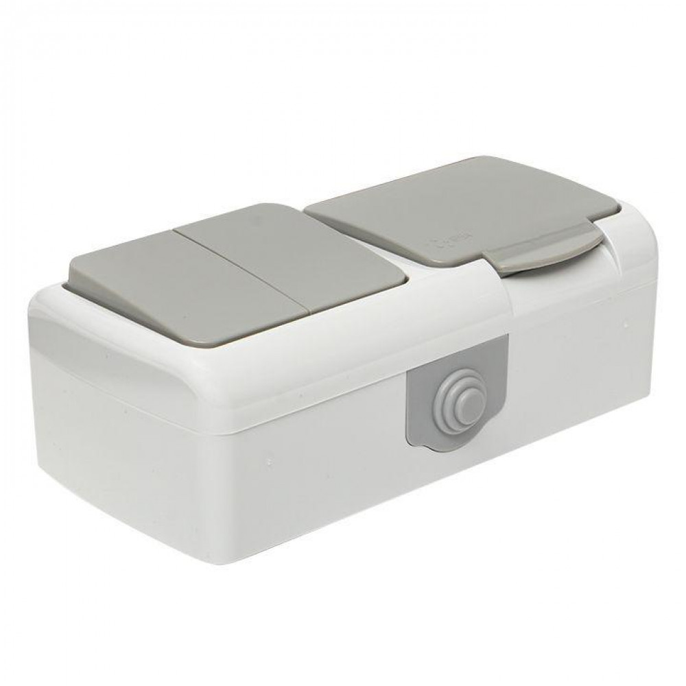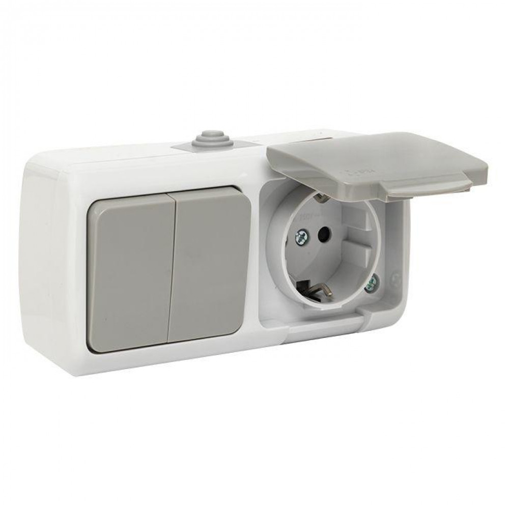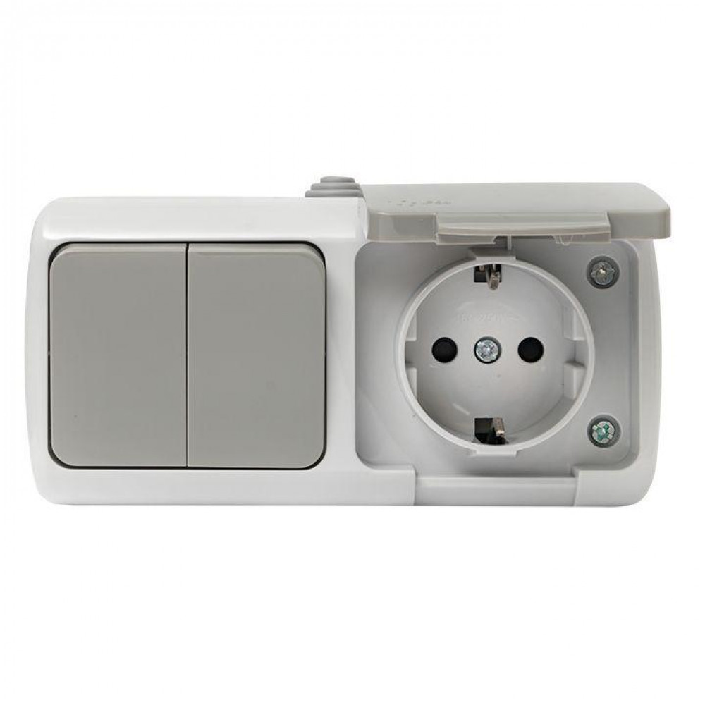 Блок ОП розетка 1-м 16А с заземл. с крышкой+выключатель 2-кл. Мурманск IP54 сер. EFRV16-052-30-540, Блок совмещенный открытого монтажа