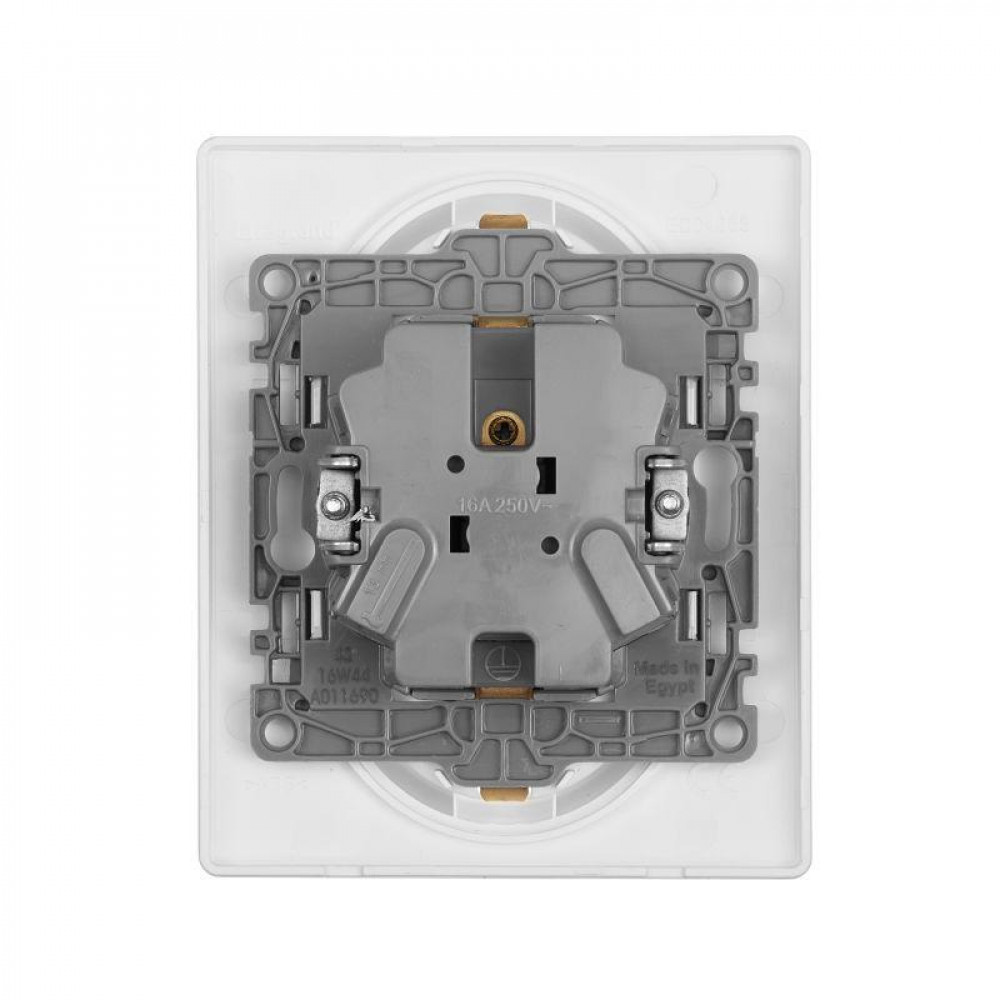 Розетка 2-м СП Etika 16А IP20 250В 2P+E с заземл. немецк. стандарт винт. клеммы в сборе бел. Leg 672223, Розетка скрытого монтажа