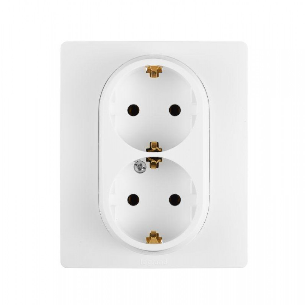 Двойная розетка с заземлением Legrand Etikaдля скрытого монтажа, цвет белый. Максимальный ток 16 А, максимальная мощность 3680 Вт. Применяется в зданиях, оборудованных для повышения безопасности проводкой с заземлением (с защитным проводником). Позволяет компактно разместить две розетки, используя одно место установки.