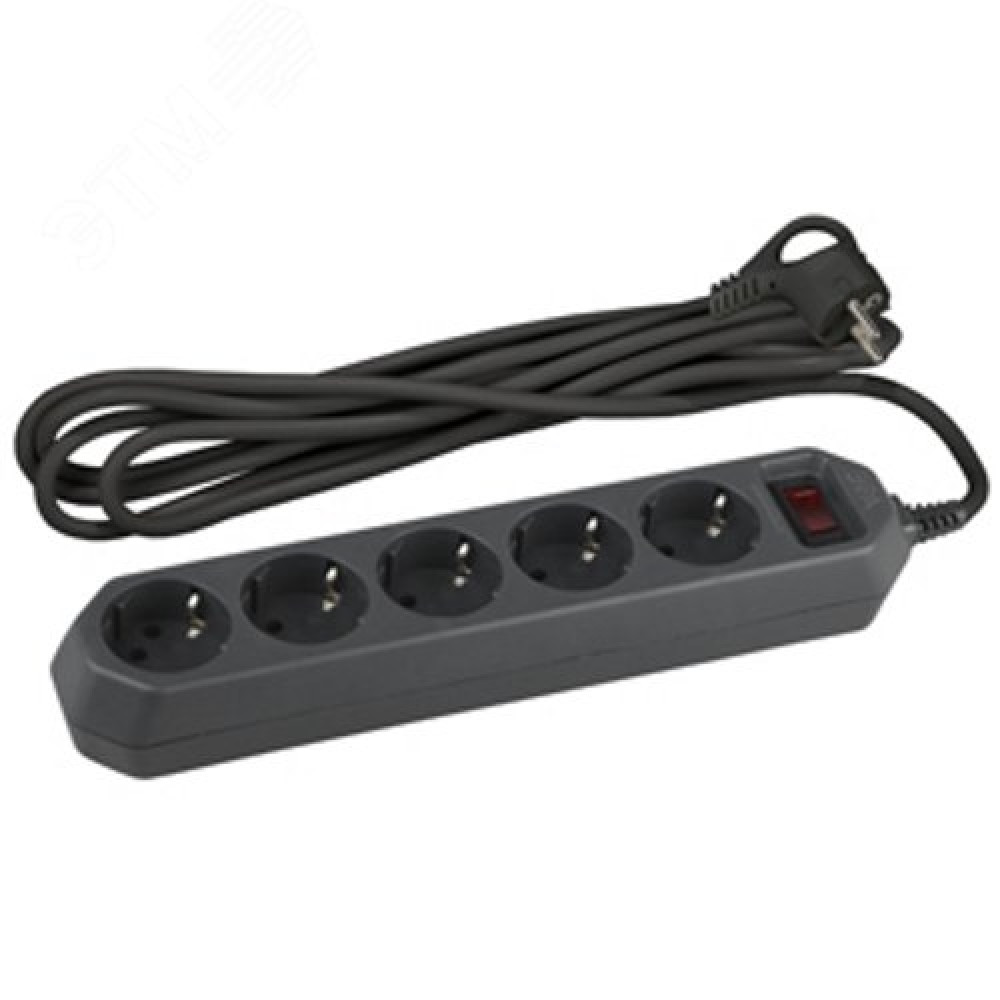 Описание Удлинитель с сетевым фильтром 5х5м с заземл. 10А IP20 USF-5es-5m-B ПВС 3х0.75 с выкл. черн. Б0019737