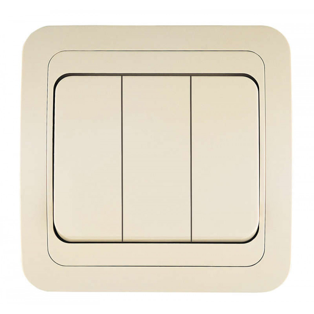 Выключатель 3-кл. 3п СП Mimoza 10А IP20 крем./крем. 25091, Выключатель и переключатель скрытого монтажа