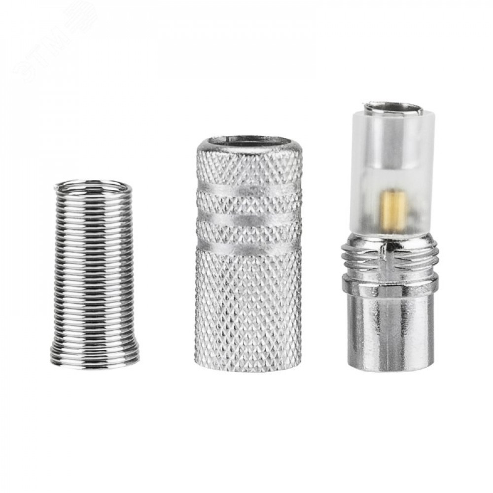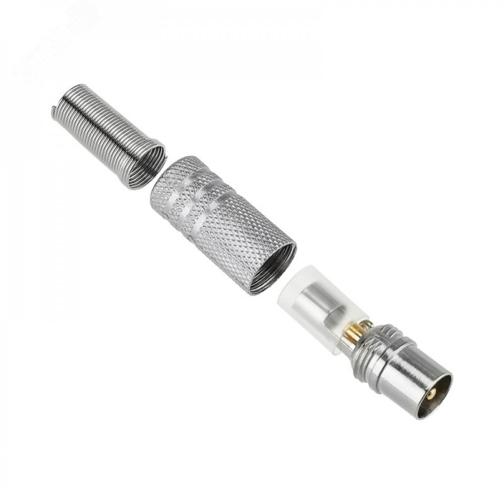 Разъём предназначен для подключения эфирного, спутникового и кабельного телевидения. Установка разъема производится с помощью винтового зажима центральной жилы и обжима экрана на коаксиальном кабеле. Изготовлен разъем из никелированного металла.