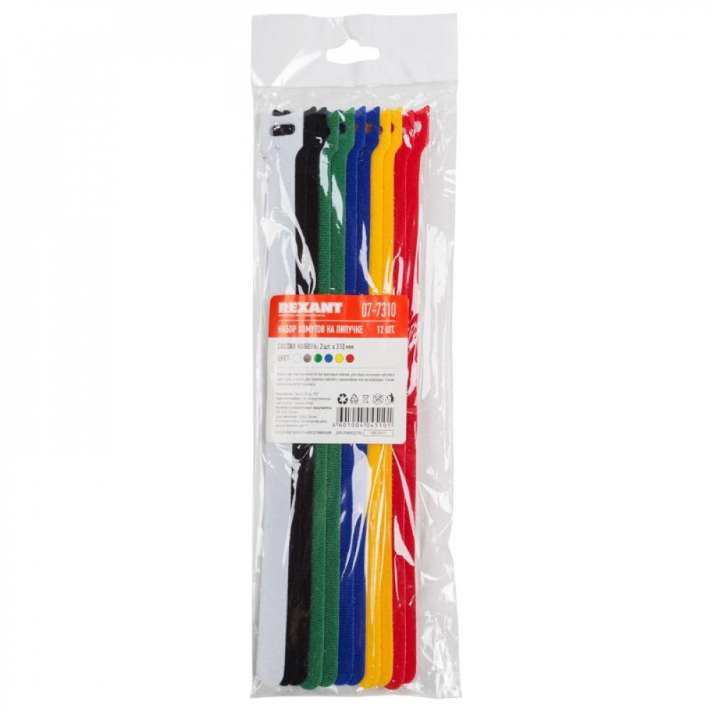 Описание Набор хомутов MGT-310 16х310 P6.6 многораз. на липучке разноцвет. (уп.12шт) 07-7310