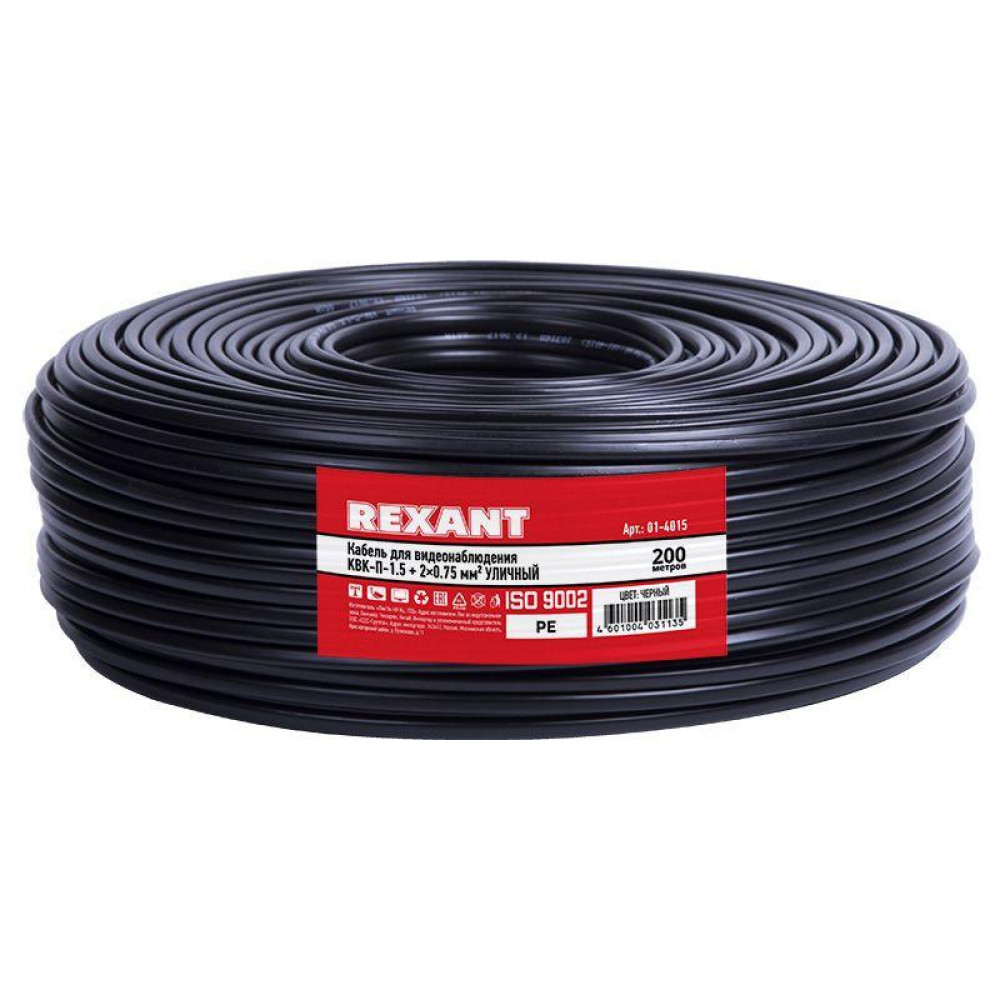 Кабель KBK-П-1,5+2х0,75 кв.мм черный OUTDOOR REхANT предназначен для передачи телевизионных сигналов в системах видеонаблюдения с одновременным подключением питания и/или передачи сигналов управления.