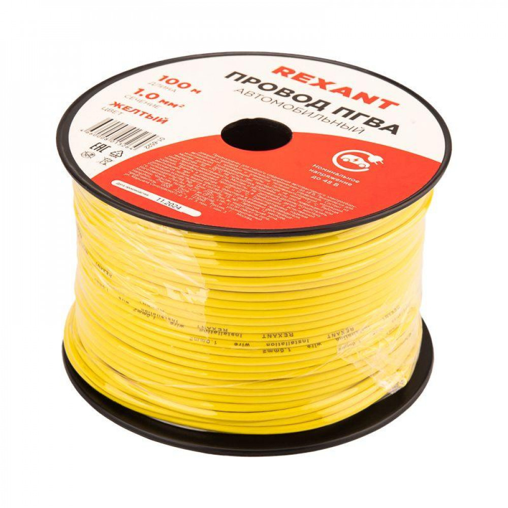 Провод ПГВА 1х1,00мм2, желтый, бухта 100м, Кабель и провод силовой гибкий