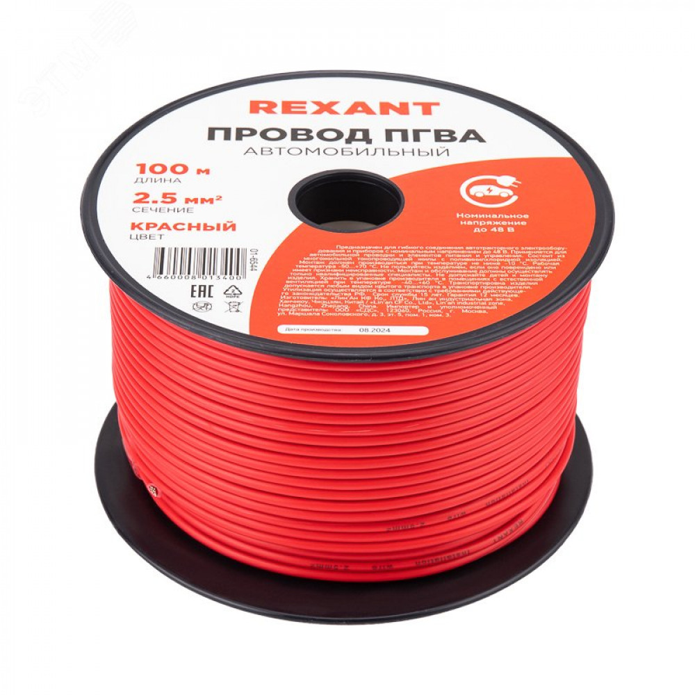 Описание Провод ПГВА 1х2,50мм2, красный, бухта 100м