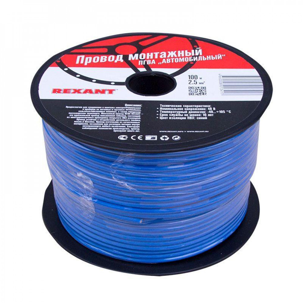 Описание Провод ПГВА 1х2,50мм2, синий, бухта 100м