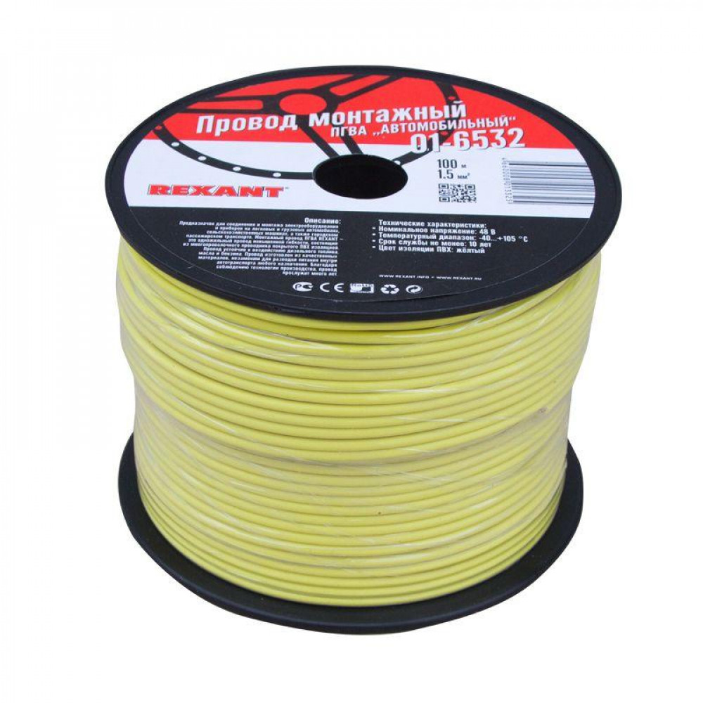 Описание Провод ПГВА 1х1,50мм2, желтый, бухта 100м