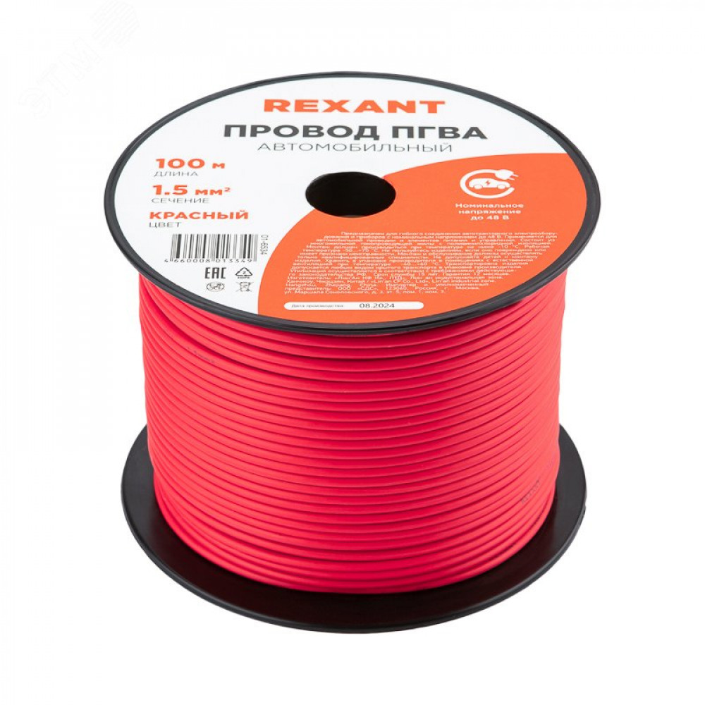 Описание Провод ПГВА 1х1,50мм2, красный, бухта 100м