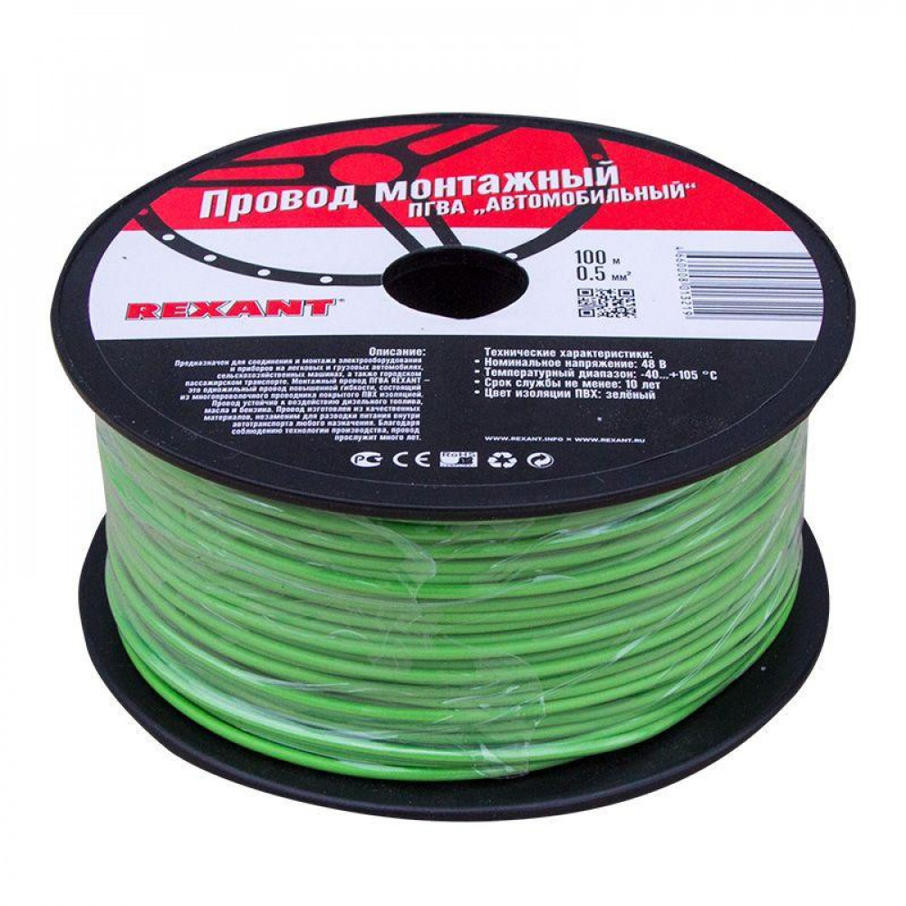 Описание Провод ПГВА 1х0,50мм2, зеленый, бухта 100м